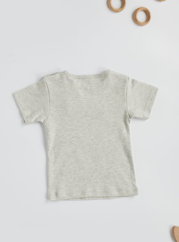 This Simba print set offers a charming blend of style and comfort for baby boys. The t-shirt features a classic crew neck, short sleeves, and a snap button closure on one shoulder for easy dressing. The coordinating shorts are designed with a drawstring closure for everyday functionality. Crafted from soft fabric, this set is perfect for casual wear.