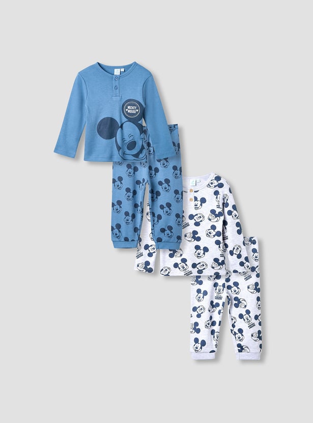 Disney Mickey Mouse Print T-shirt with Pyjamas - Set of 2