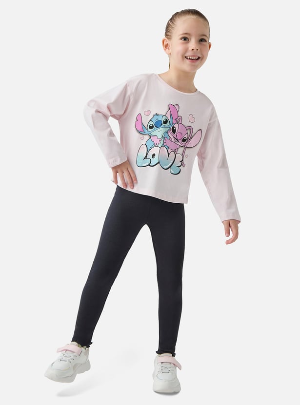 Lilo and Stitch Print T-shirt with Long Sleeves - Set of 2