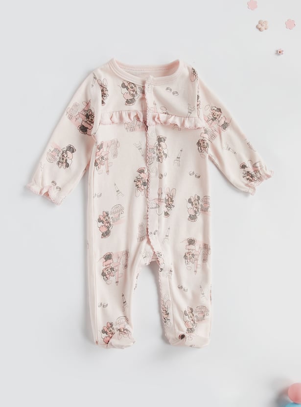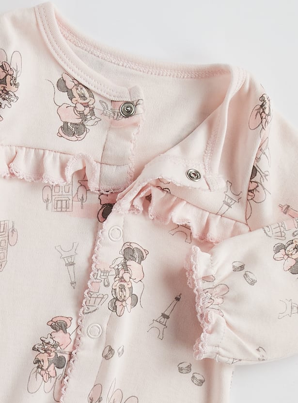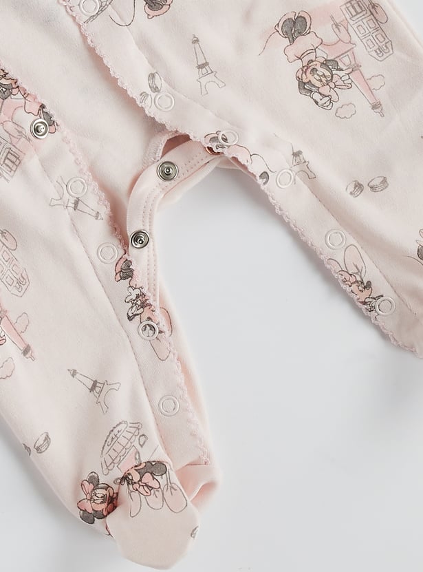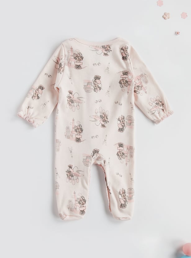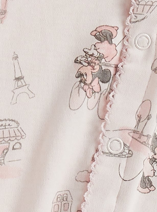 Minnie Mouse Print Closed Feet Sleepsuit with Button Closure