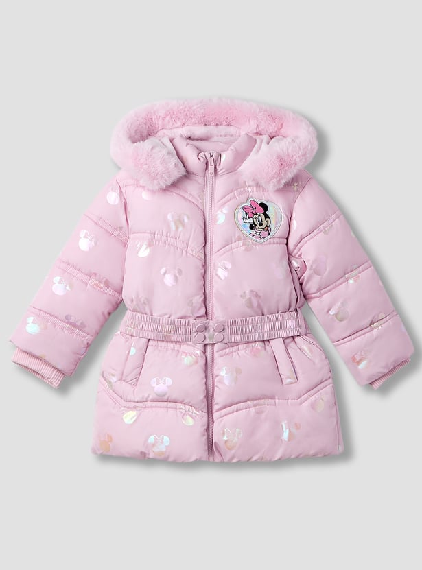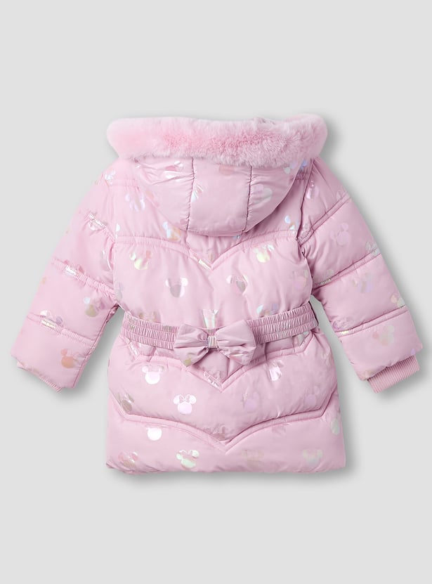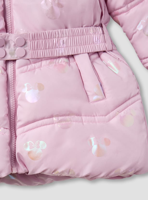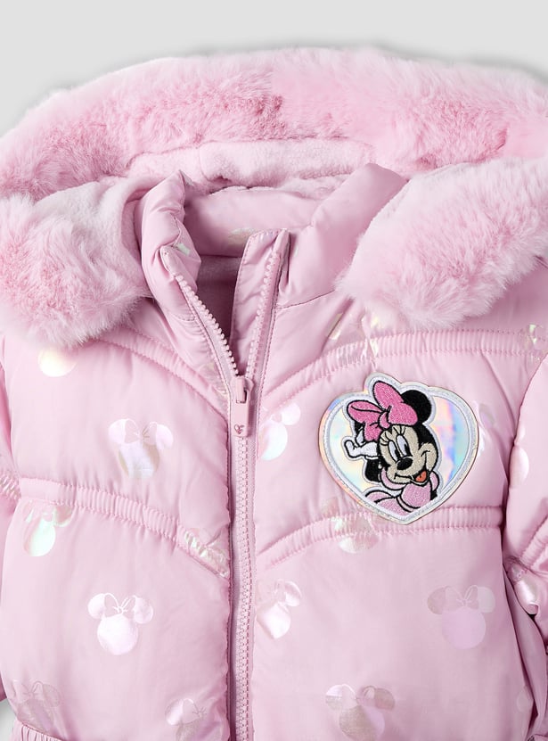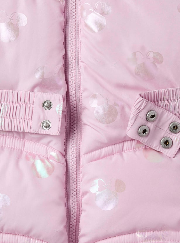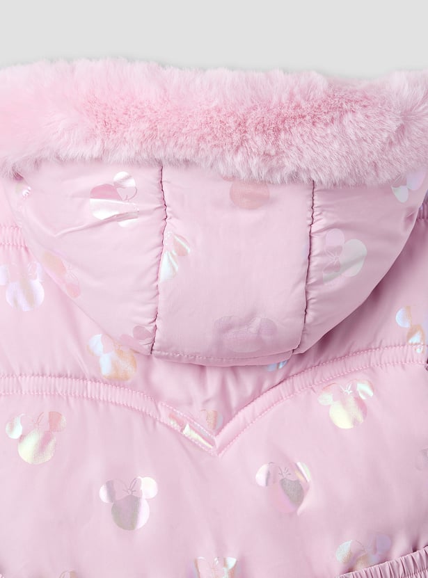 Minnie Mouse Print Puffer Jacket with Hood