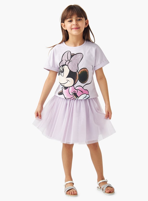 Minnie Mouse Embellished T-shirt and Skirt Set