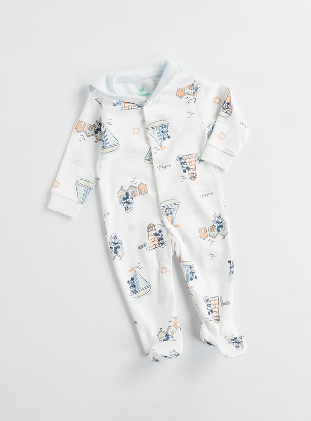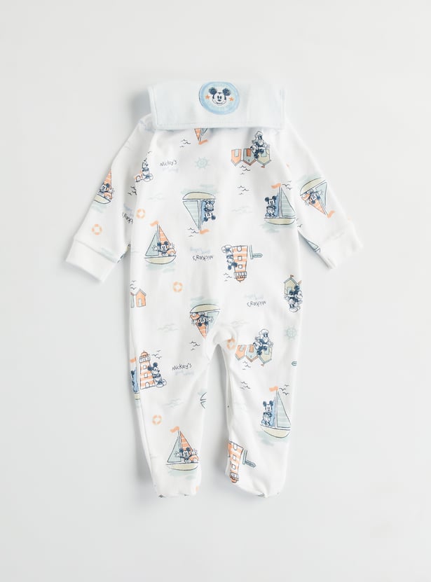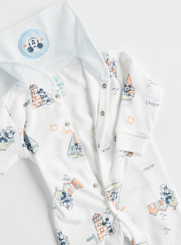 Mickey Mouse Print Hooded Sleepsuit