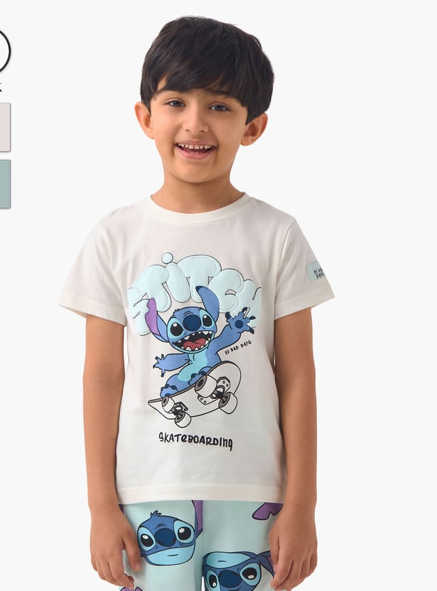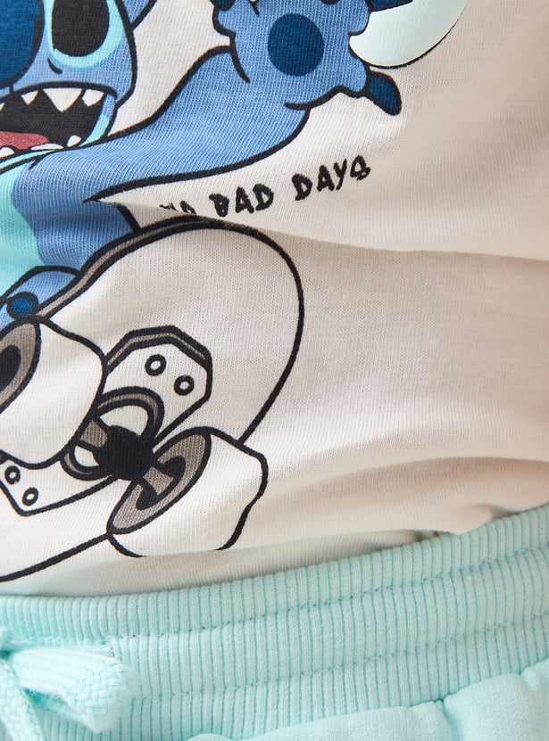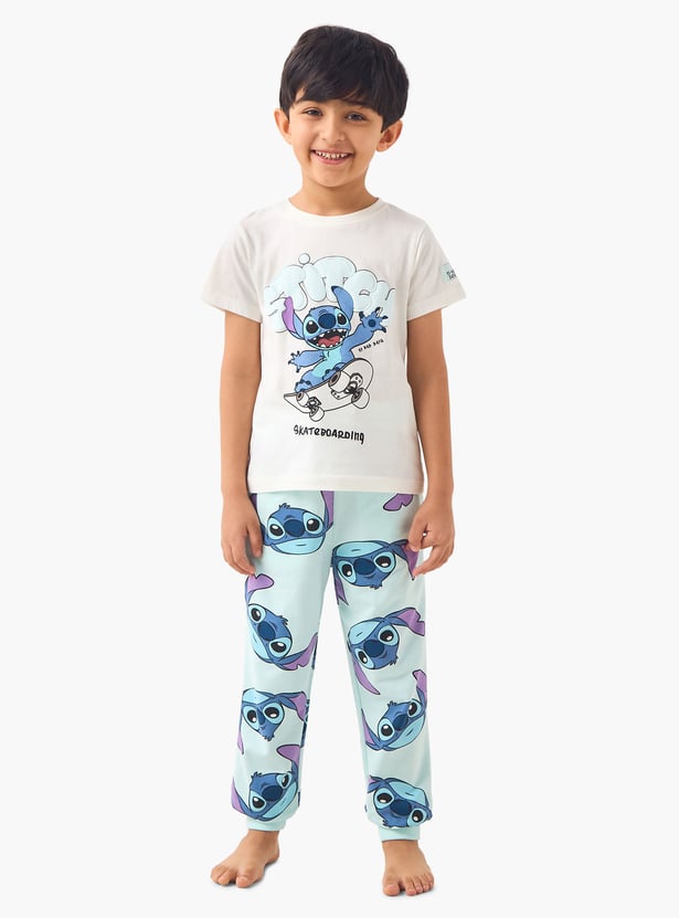 This Stitch print pyjama set for young boys combines comfort and playful design, perfect for casual nights. Crafted from soft fabric, the short-sleeved t-shirt and regular-fit pyjamas ensure a cosy night's sleep. Featuring vibrant Stitch prints, this sleepwear set brings fun to bedtime, making it a delightful addition to your child's nightwear collection. Ideal for fostering a sense of tradition, hospitality, and family time.