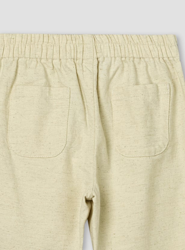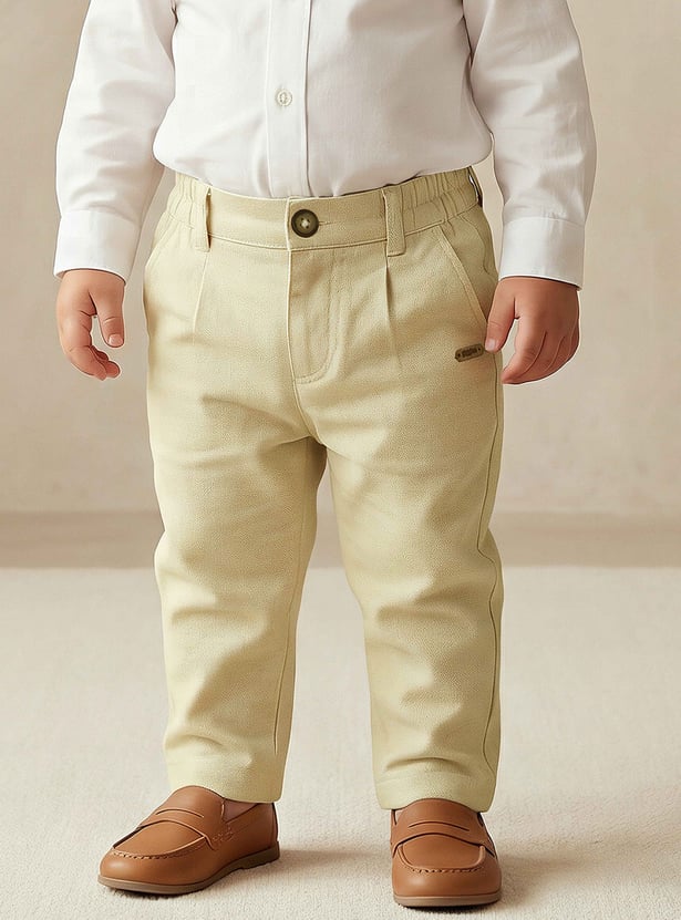 Tailored for little adventures with a touch of everyday charm, these solid trousers blend comfort and style effortlessly. Designed with a neat button closure and an elasticated waistband, they ensure a secure yet flexible fit through the day. The straight-leg silhouette allows easy movement, making them perfect for playtime or outings. Crafted from soft, breathable fabric, they keep kids comfortable from morning to evening.