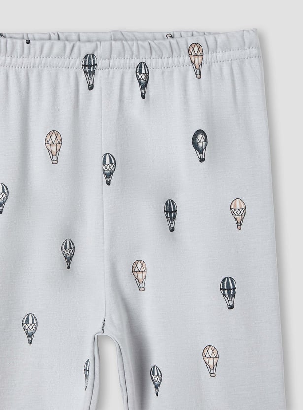 Ensure your little one enjoys ultimate comfort with this delightful two-piece pyjama set, featuring an enchanting hot air balloon print. Crafted from soft, breathable fabric, this set provides gentle contact with delicate skin, promoting restful sleep. The long-sleeved top includes a classic collar and front button closure for easy dressing, while the coordinating trousers offer a comfortable elasticated waist. This charming pyjama set is perfect for cosy nights and relaxed mornings.