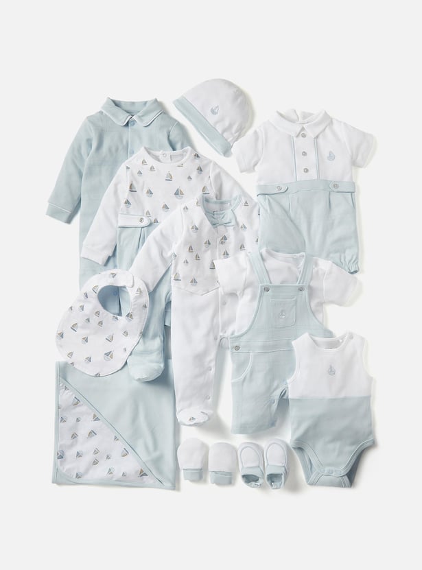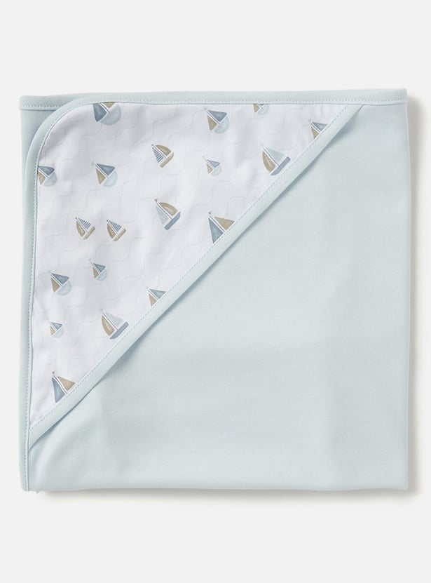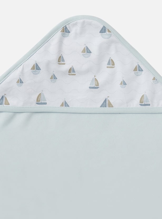 Giggles Sail Boat Print Receiving Blanket with Hood - 70x70 cm