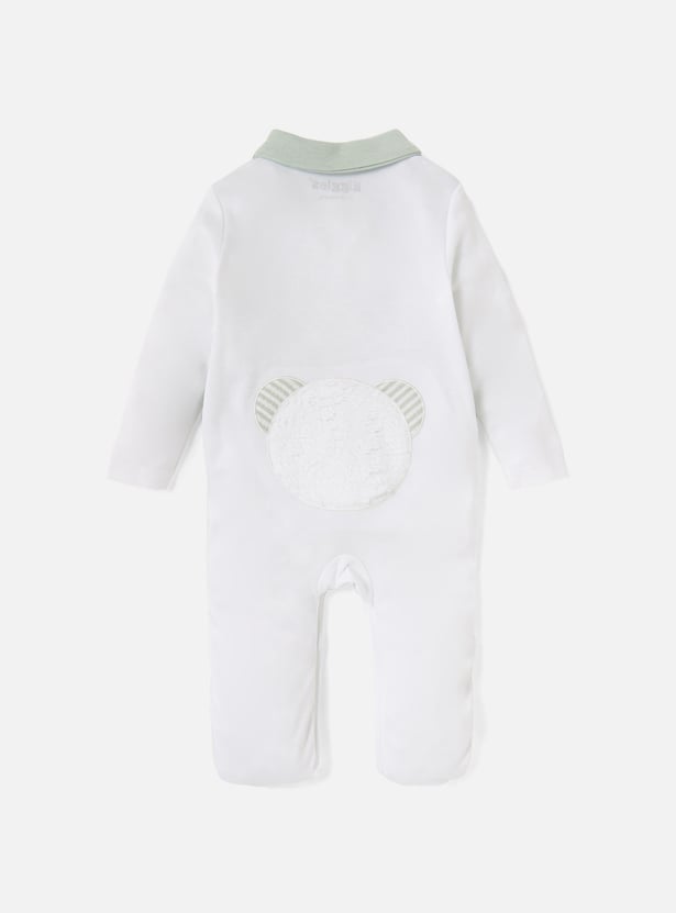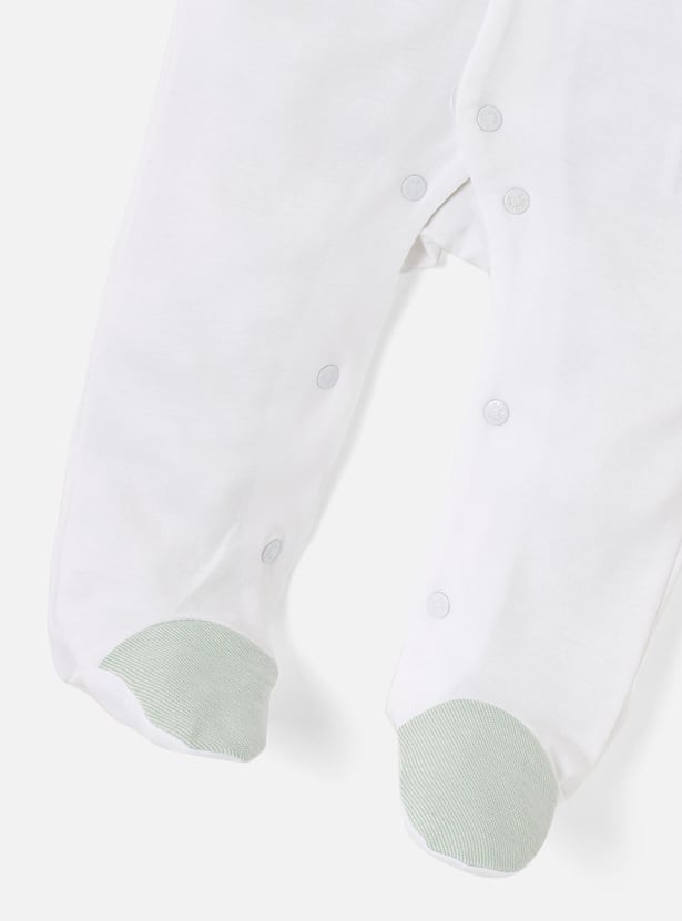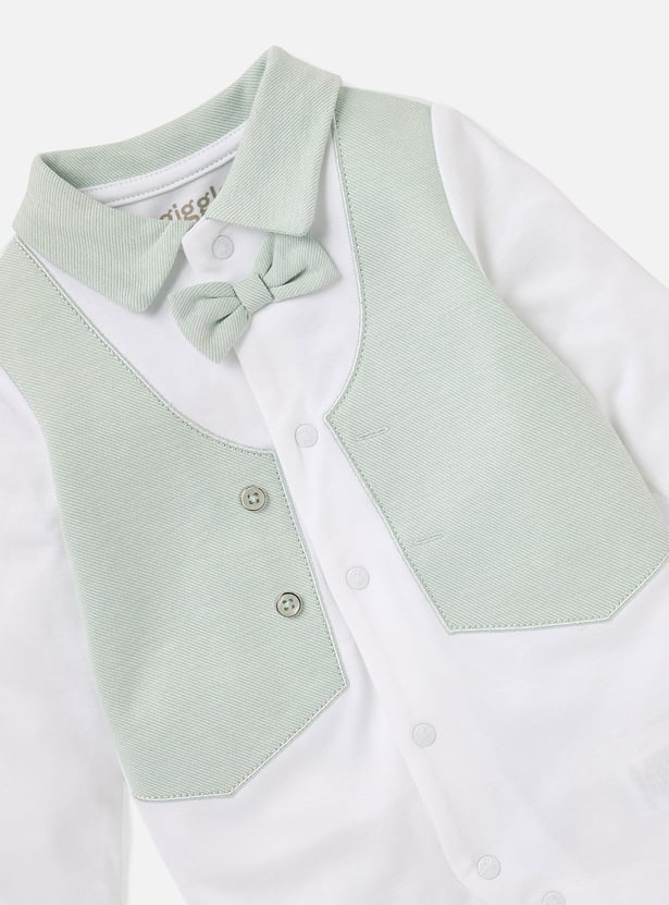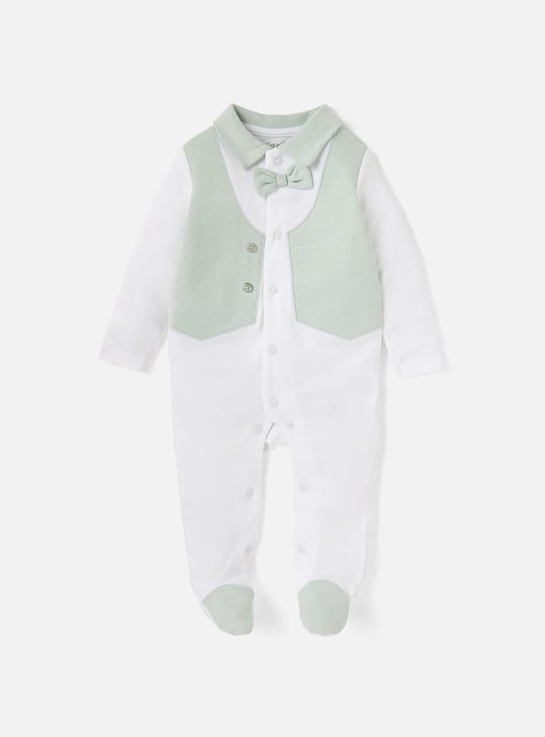 Giggles Colourblock Closed Feet Sleepsuit with Bow Detail and Button Closure