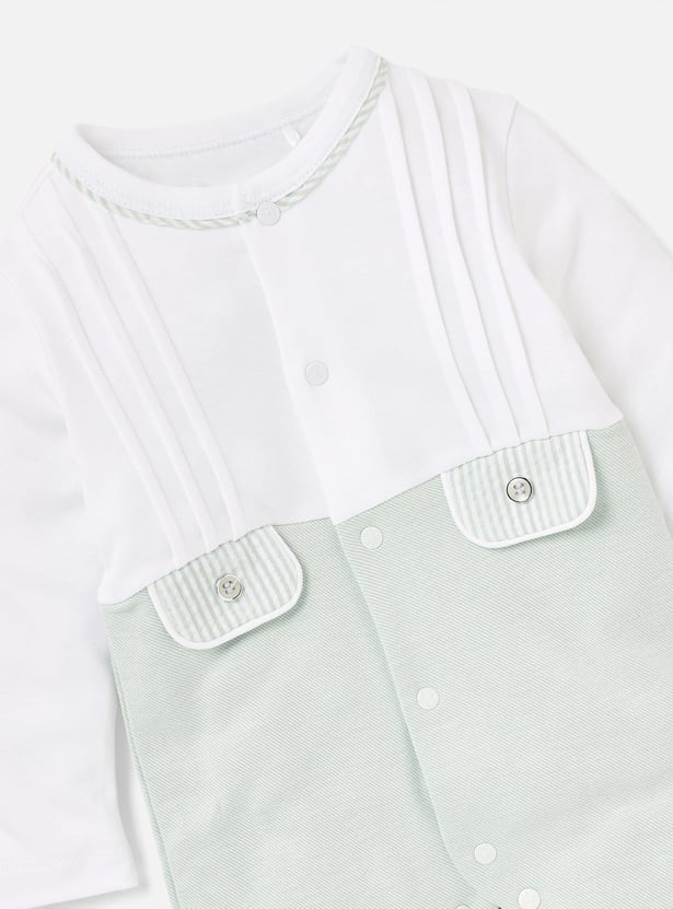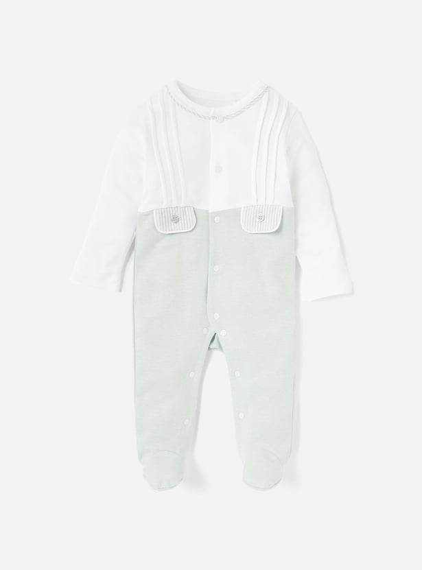 Giggles Colourblock Closed Feet Sleepsuit with Button Closure