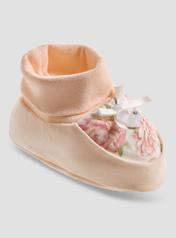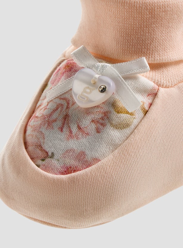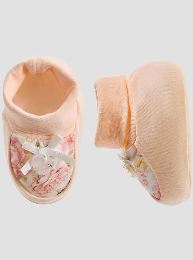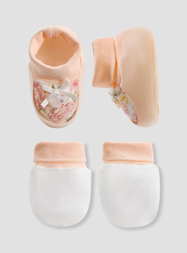 Giggles Floral Print Booties And Mittens Set