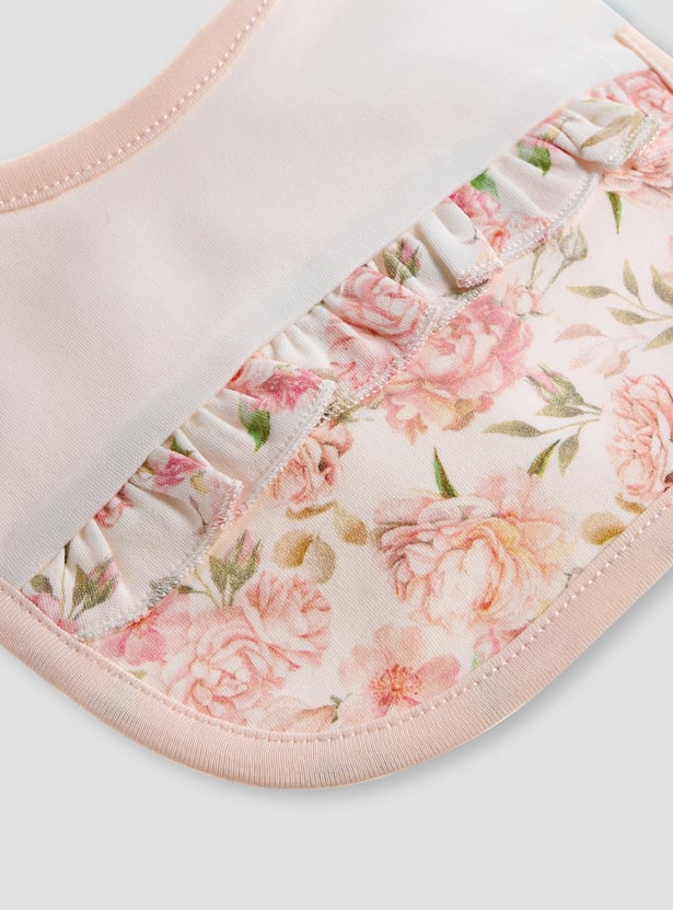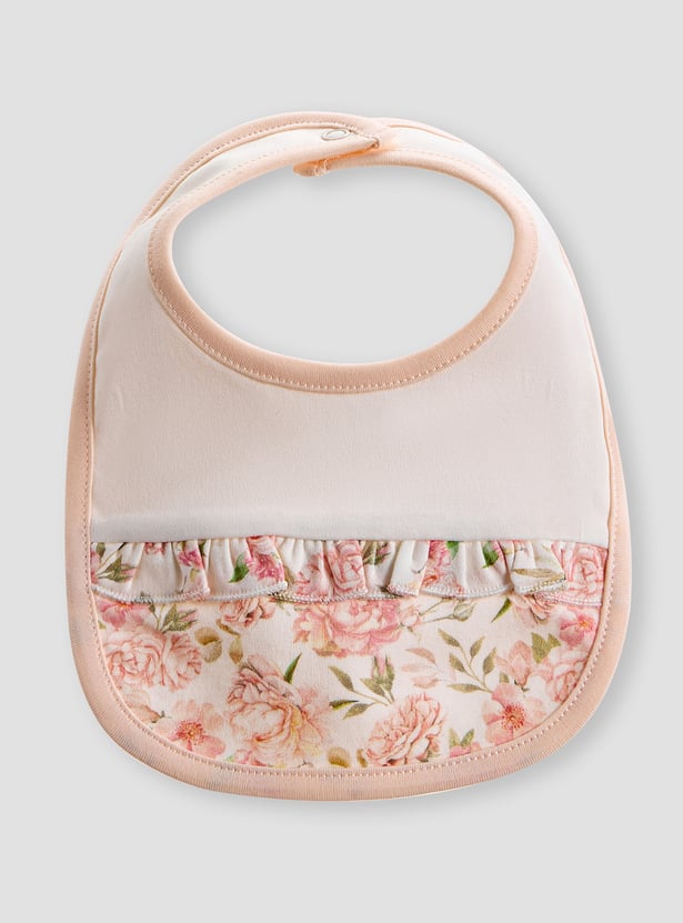 Giggles Floral Print Bib with Button Closure