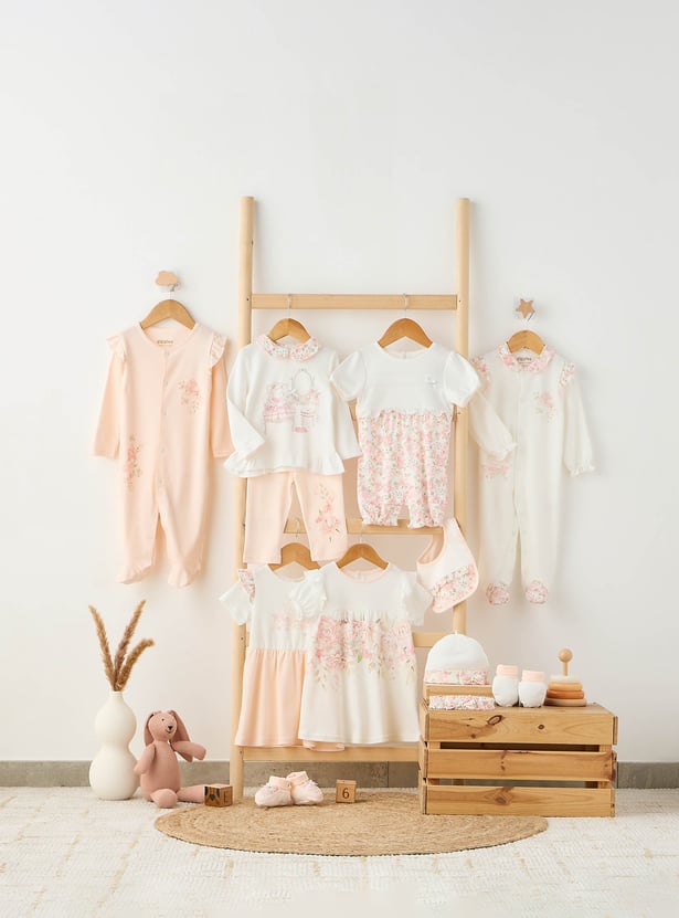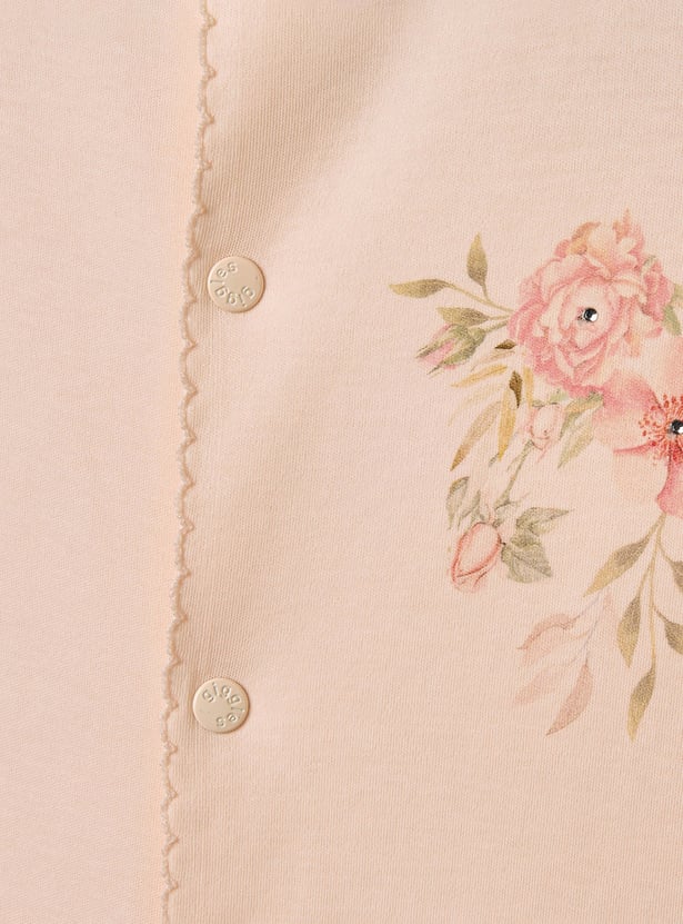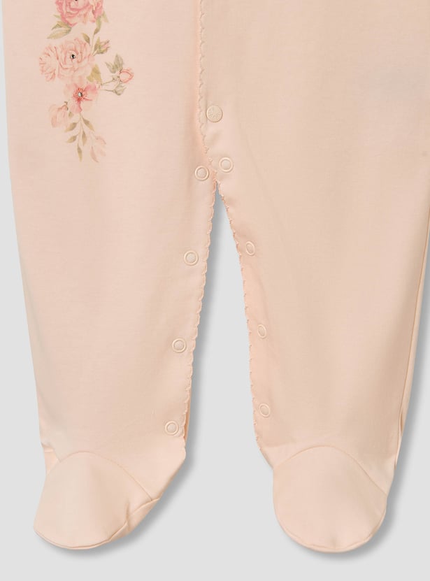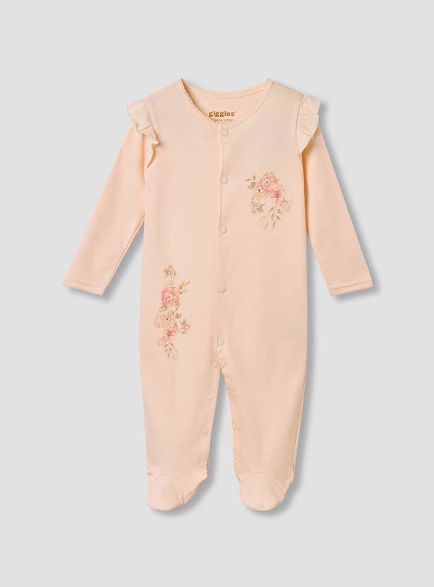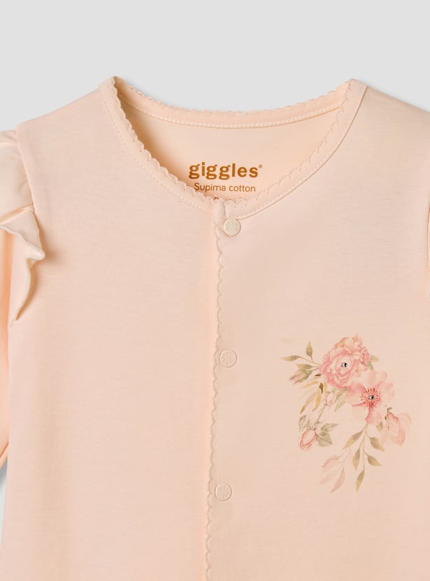 Giggles Floral Print Sleepsuit with Ruffle Detail