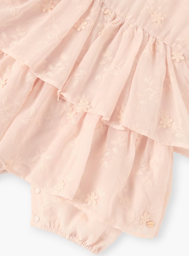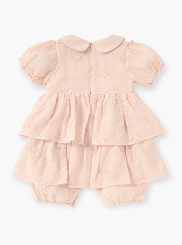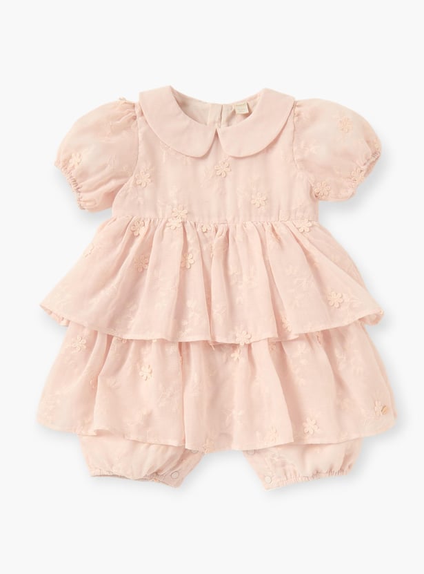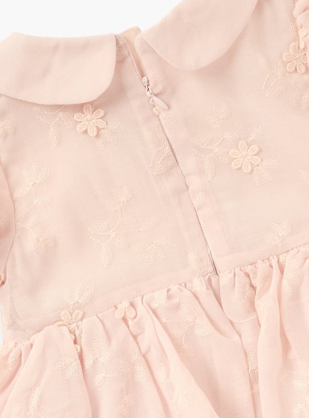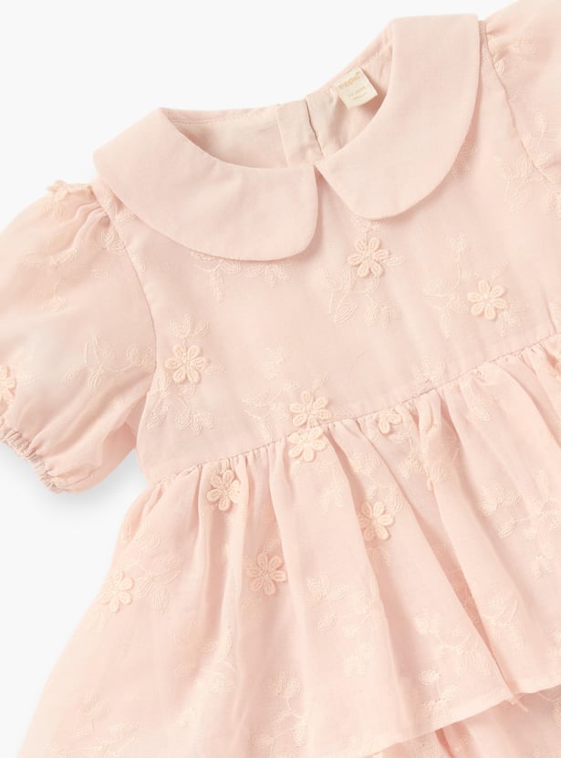 Giggles Floral Embroidered Romper with Collar and Short Sleeves