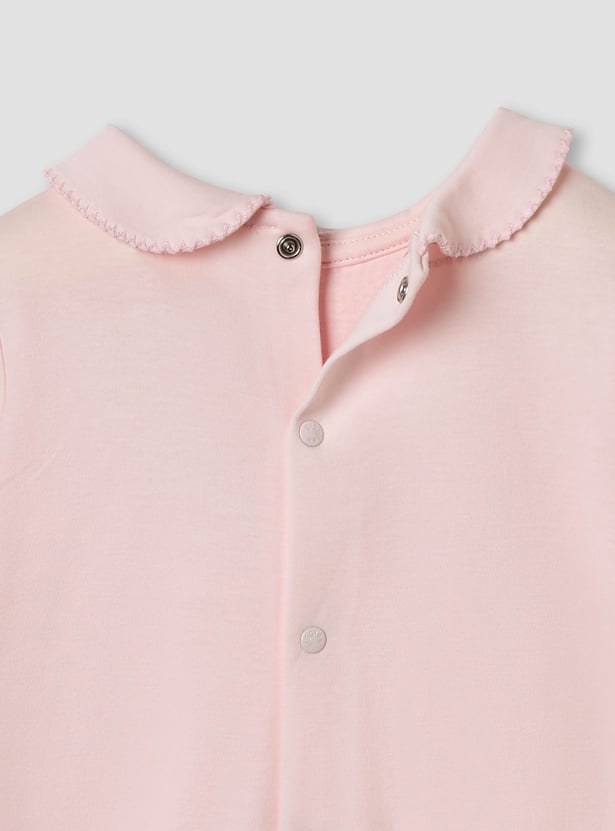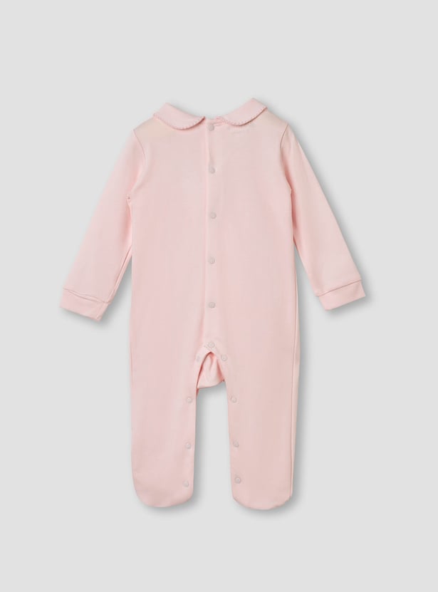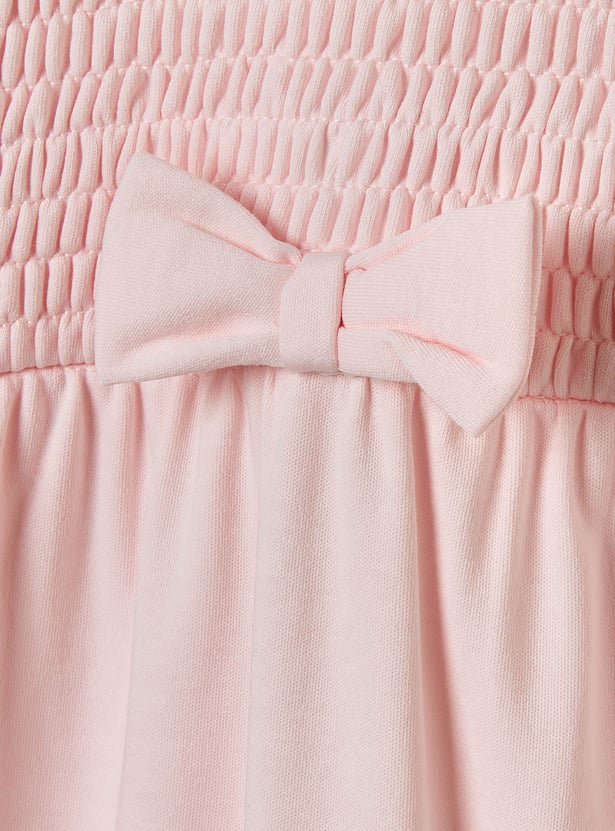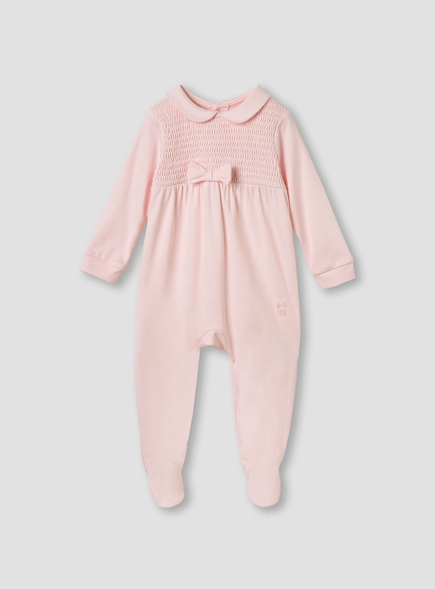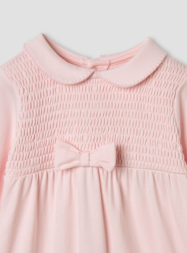 Giggles Smocked and Bow Accent Collared Sleepsuit
