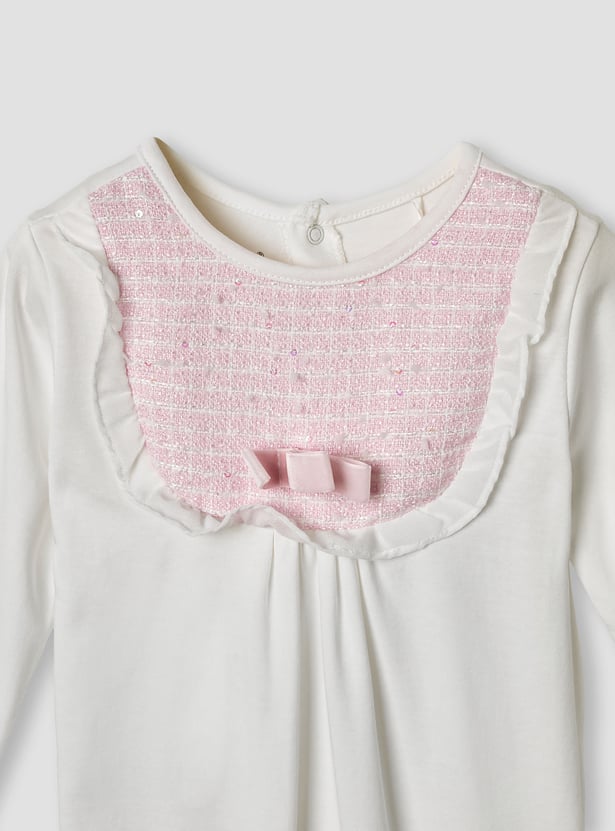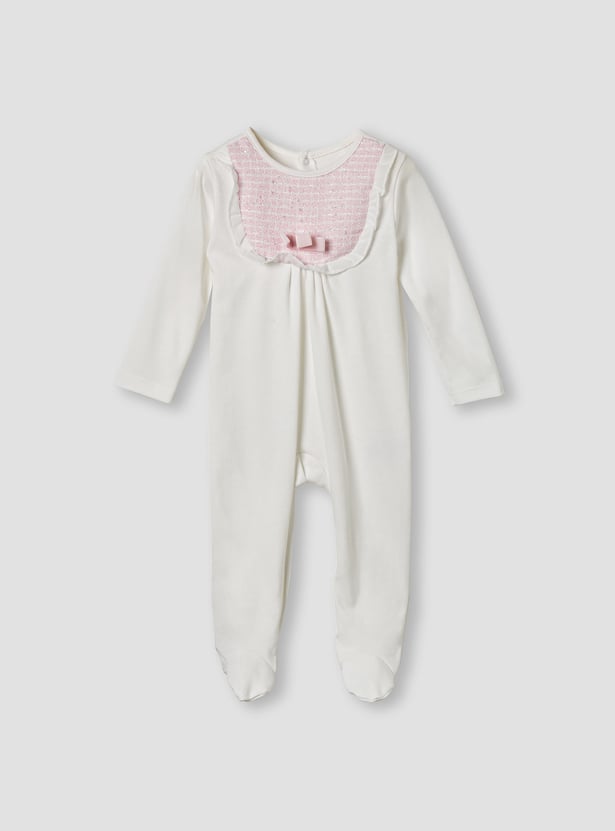 Giggles Bow Accent Sleepsuit with Long Sleeves