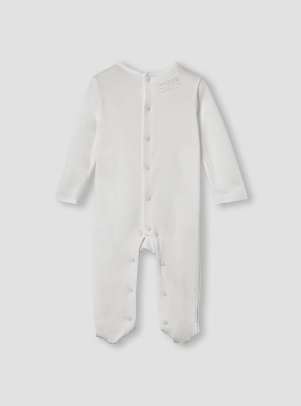 Dress your baby girl in gentle comfort with this sleepsuit. Crafted from soft, breathable fabric, it ensures a cosy feel through naps and nighttime slumber. The delicate bow detail adds a sweet, feminine touch to the simple design. Long sleeves and closed feet provide full coverage and warmth. A charming essential for restful sleep and cuddly moments.