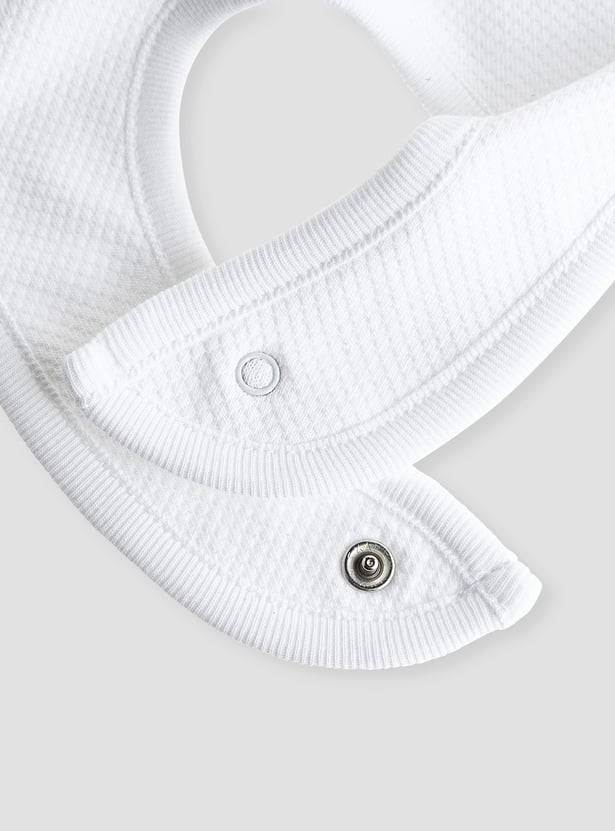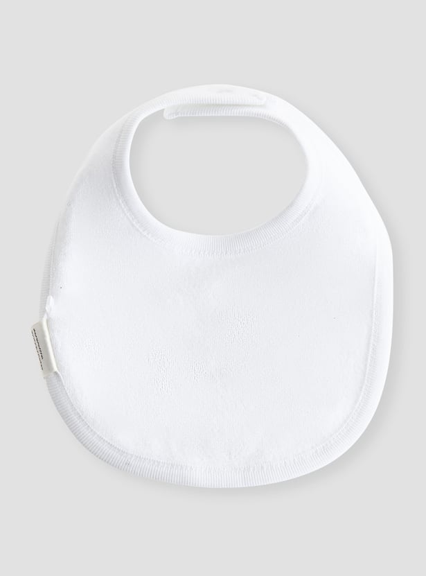 This soft, white baby bib features delicate bee and floral embroidery, adding a touch of charm to mealtimes. Crafted from gentle, absorbent material, this bib protects your little one's clothes from spills and dribbles. The secure closure ensures a comfortable fit for your baby, while the easy-care fabric allows for convenient machine washing.