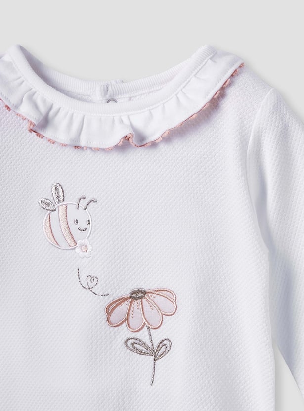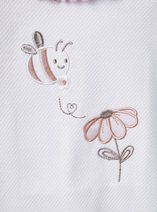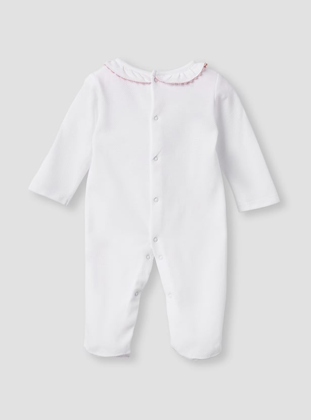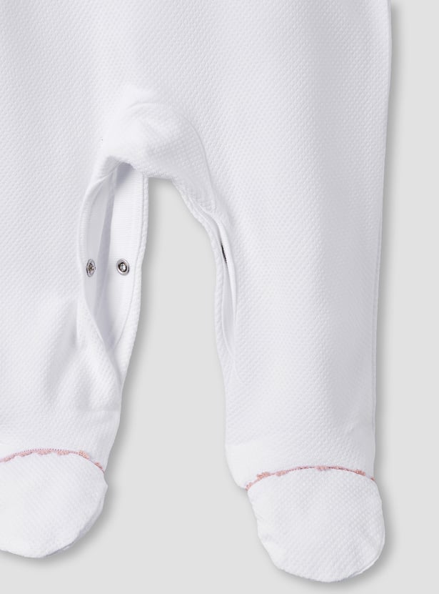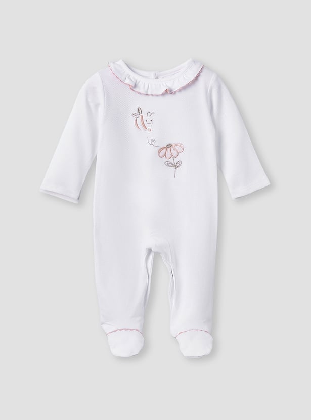 Wrap your baby in softness and style with this embroidered sleepsuit, designed to offer both elegance and comfort. Featuring intricate embroidery and a gentle fabric blend, this sleepsuit is perfect for keeping your little one cosy through the night. The long sleeves are ideal for cooler nights, ensuring your baby stays snug and protected. Whether it's for sleep, cuddles, or special moments, this sleepsuit is a beautiful blend of comfort and charm.
