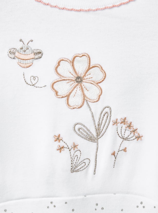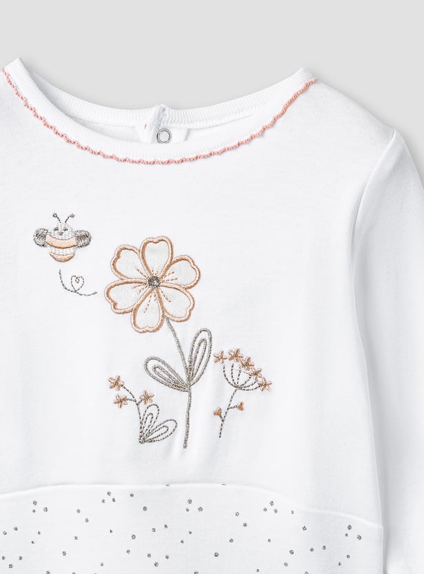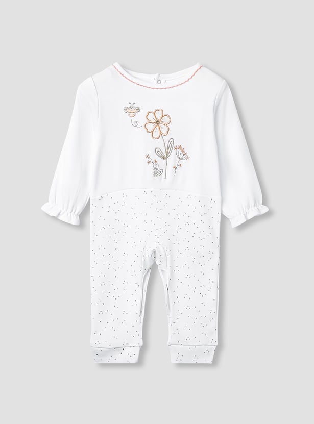 Giggles Embroidered Sleepsuit with Button Closure