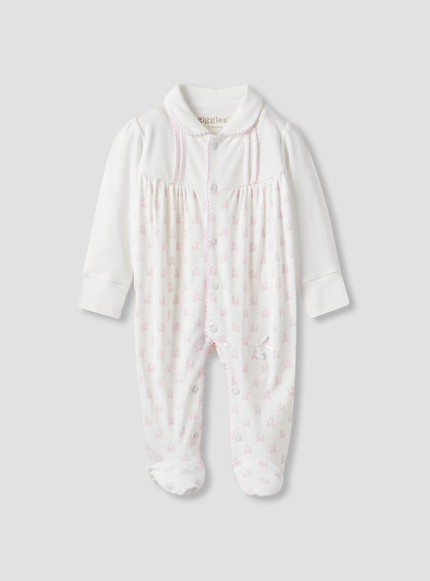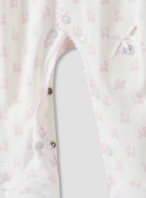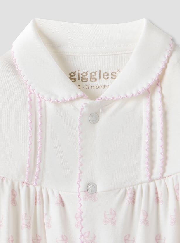Giggles Pram Print Collared Sleepsuit with Long Sleeves