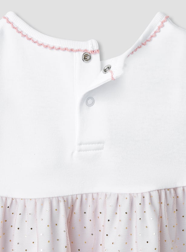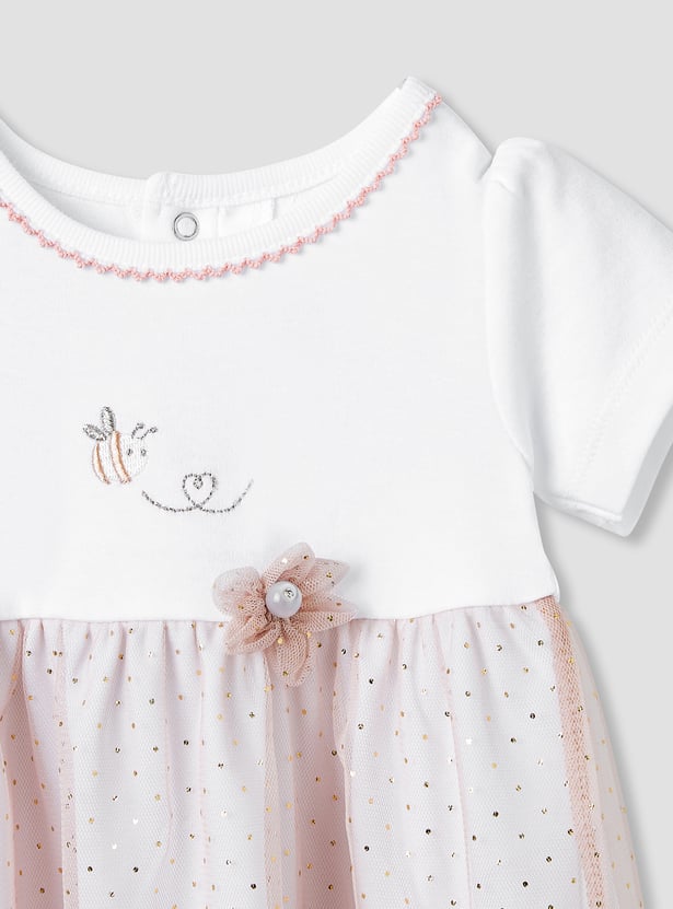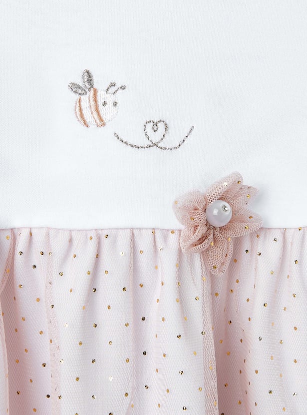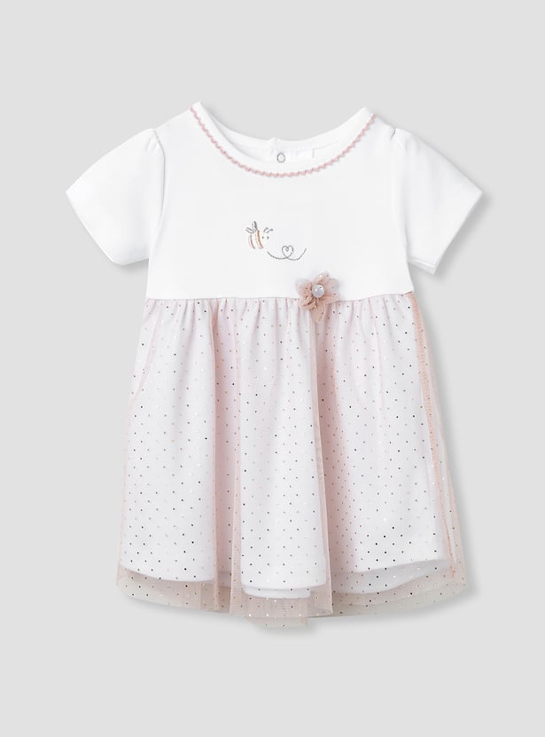 Giggles Printed A-line Dress with Floral Accent