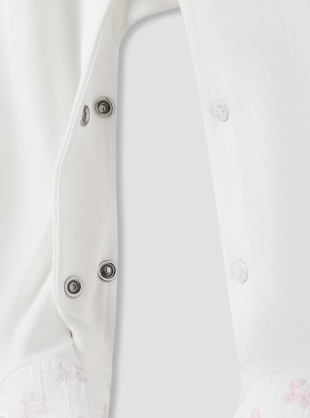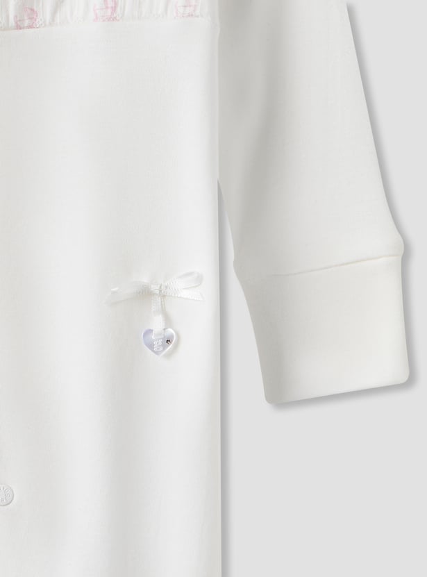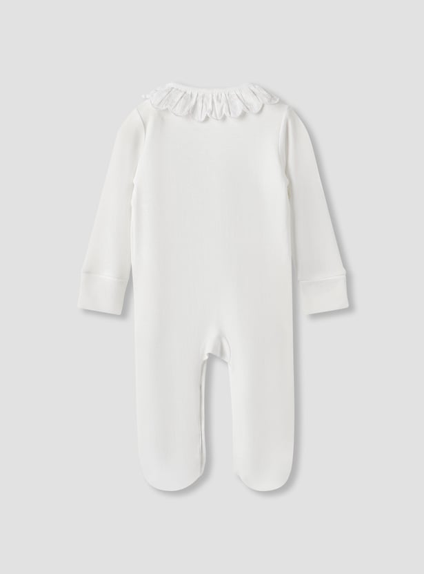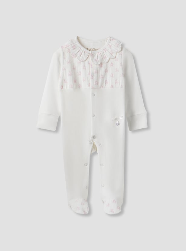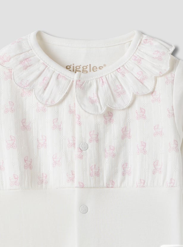Wrap your little one in all-night comfort with this charming printed collared sleepsuit. Crafted from ultra-soft fabric, it's gentle on delicate skin and breathable for year-round wear. The neat collar adds a touch of classic style to bedtime looks. Button closures make dressing and changing quick and fuss-free. Adorable prints bring a playful finish to this baby essential.