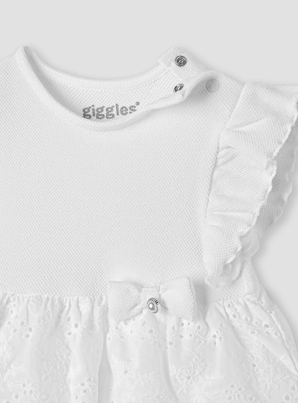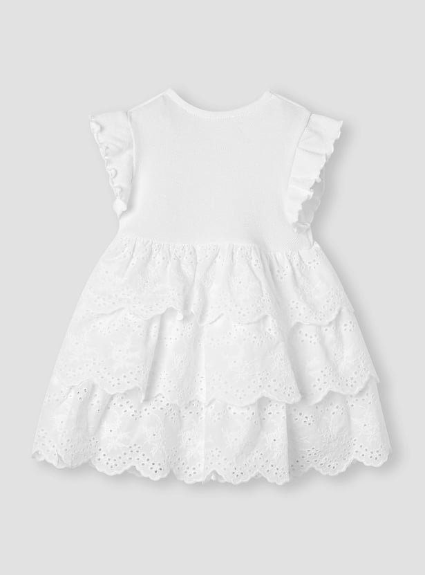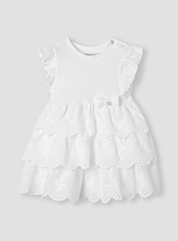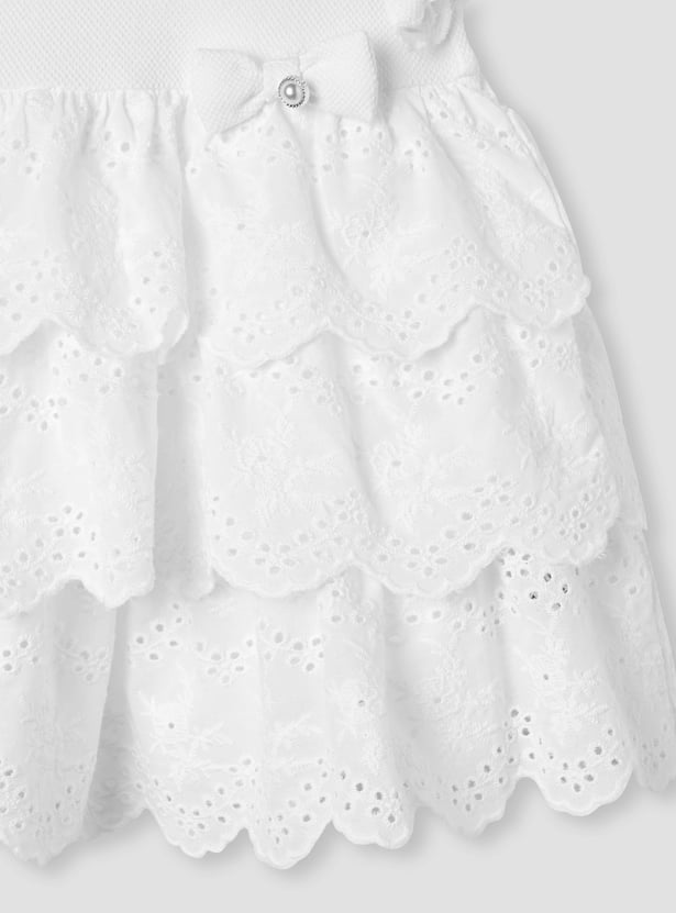 Giggles Schiffli Layered Dress with Bow Applique