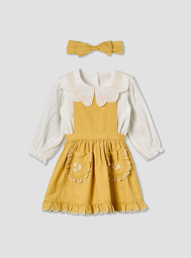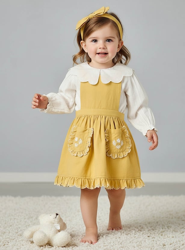 Giggles Embroidered Pinafore Dress and Top Set with Headband