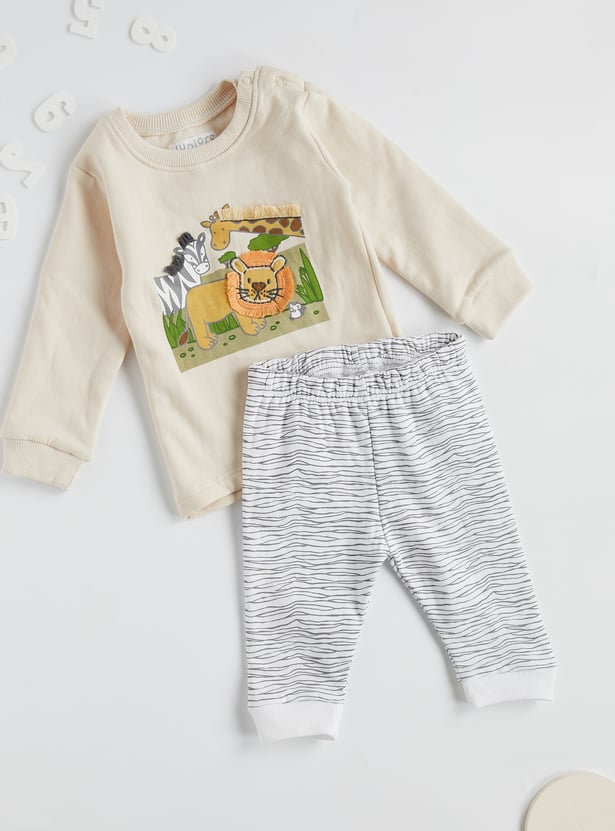 Juniors Animal Applique Long Sleeves T-shirt and Pyjama Set