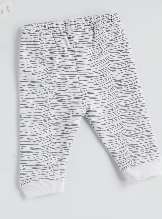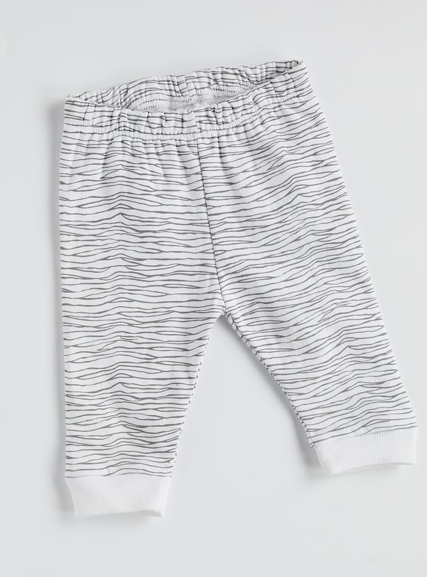 This charming pyjama set for babies features a long-sleeved top with an adorable animal print applique, offering both comfort and visual appeal. Crafted from soft, brush-back fabric, this pyjama top provides gentle warmth, ideal for cooler evenings. The accompanying bottoms feature an all-over animal print pattern, ensuring a coordinated and stylish look. This comfortable pyjama set is perfect for restful sleep or relaxed lounging at home.