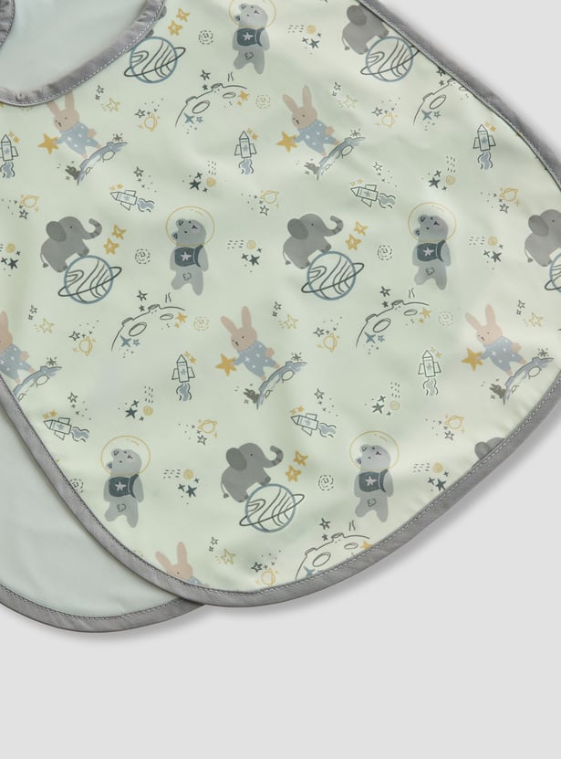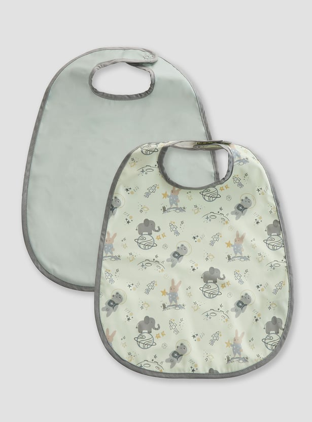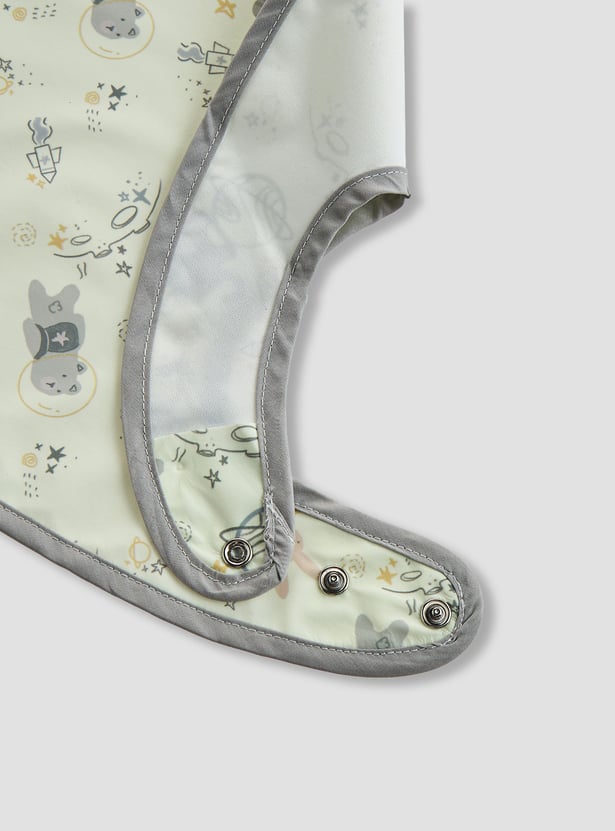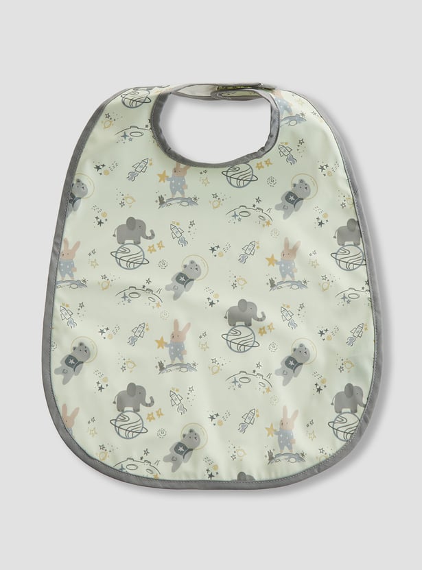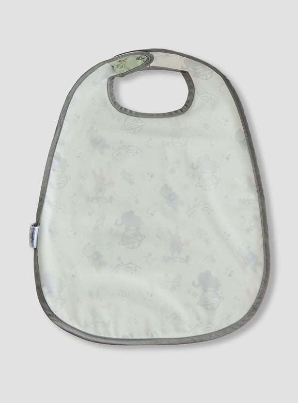 Ensure a mess-free mealtime for your little one with this charming hue and print bib. Crafted from durable Peva material, this bib is completely waterproof, providing excellent protection against spills and stains. The soft fabric ensures comfort for your baby, while the easy-to-clean surface makes post-meal tidy-ups effortless. This essential feeding accessory combines practicality with an adorable design, making it a perfect addition to your baby's mealtime routine.