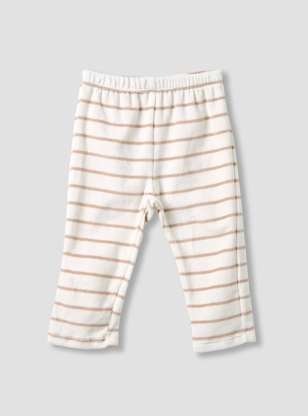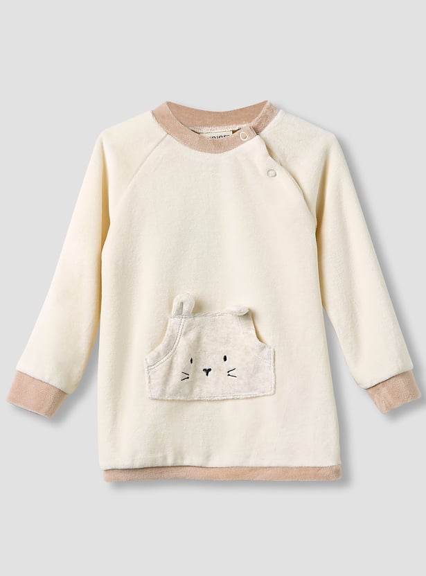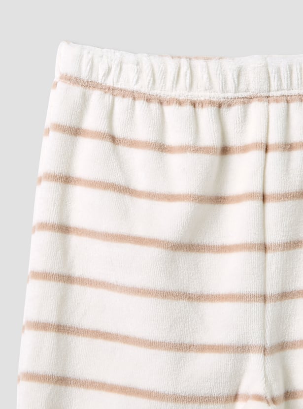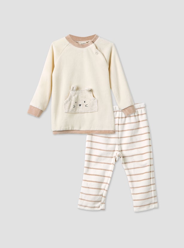 Ensure your little one enjoys ultimate comfort with this charming two-piece pyjama set, perfect for peaceful nights and relaxed mornings. The top features a delightful applique bear face pocket, adding a playful touch to the design. Crafted from soft velour fabric, this set provides exceptional warmth and a gentle feel against delicate skin. The coordinating striped trousers complete this adorable ensemble, making it an ideal choice for cosy sleepwear.
