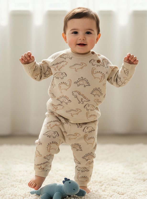Juniors Dinosaur Print Sweater with Pants Set