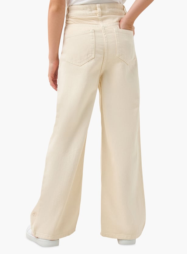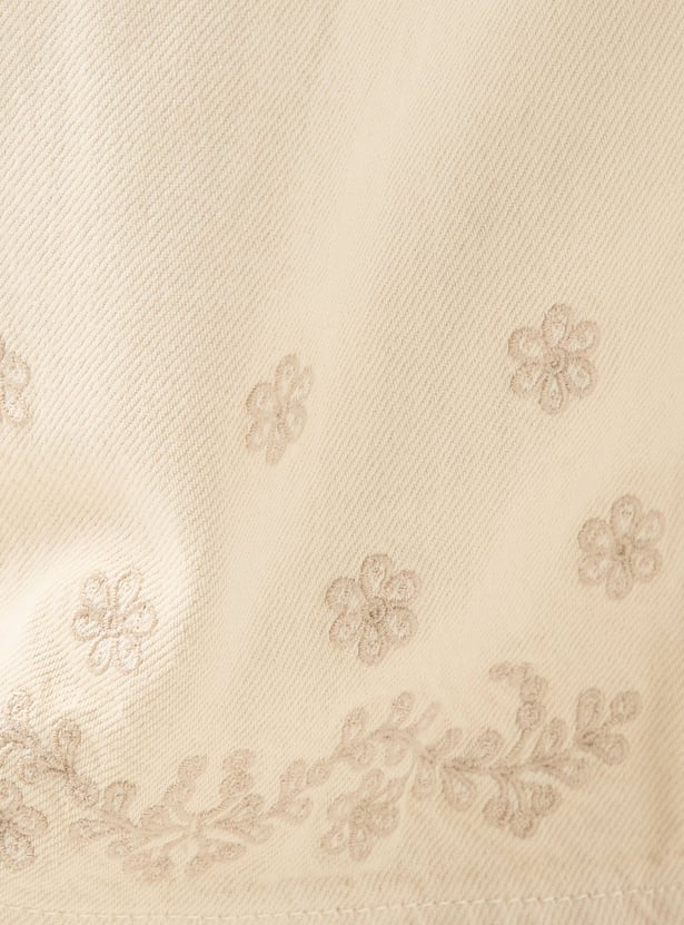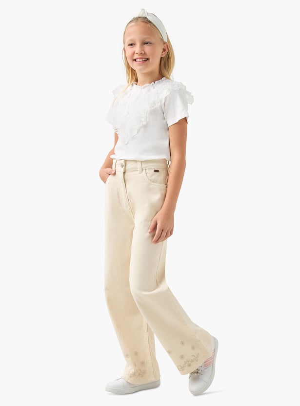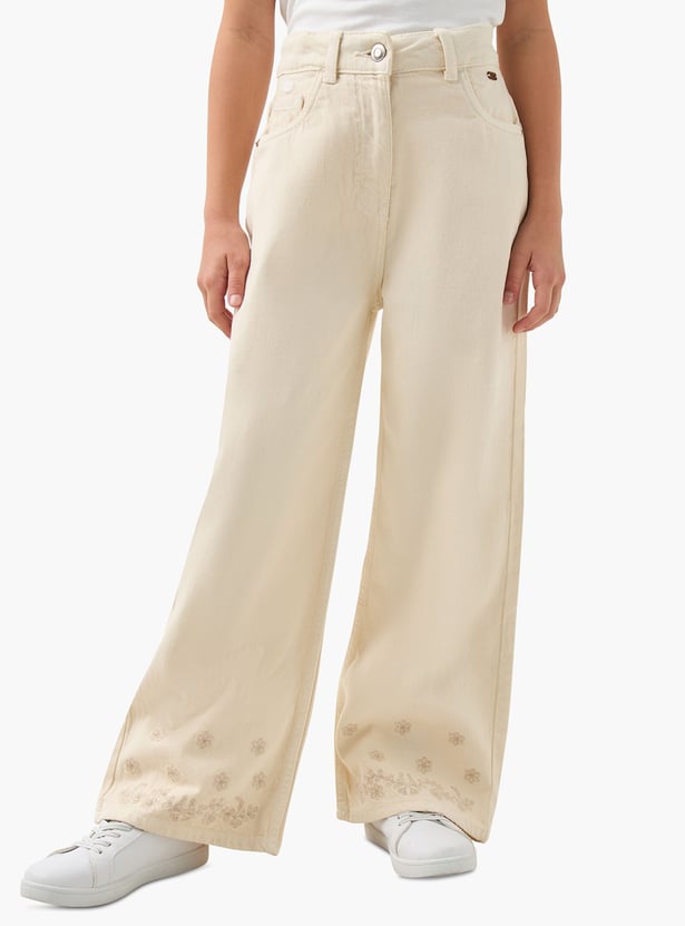 Juniors Eligo Floral Embroidered Wide Leg Jeans