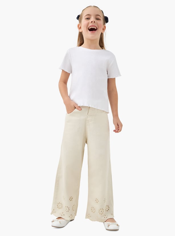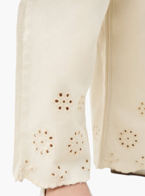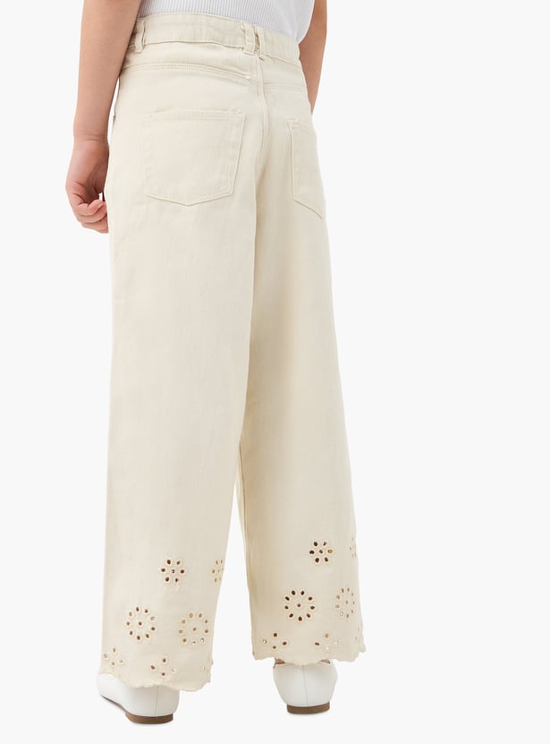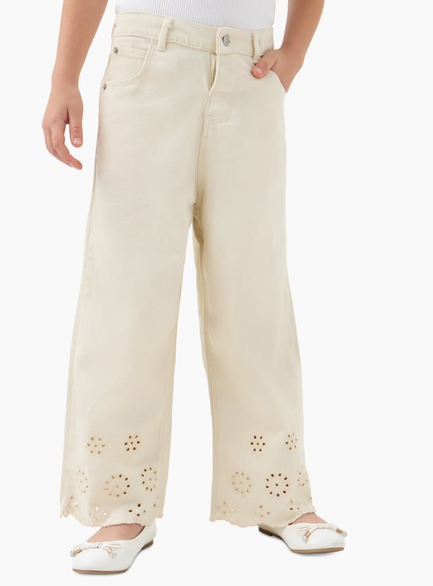 Juniors Eligo Schiffli Embroidered Hem Wide Leg Jeans