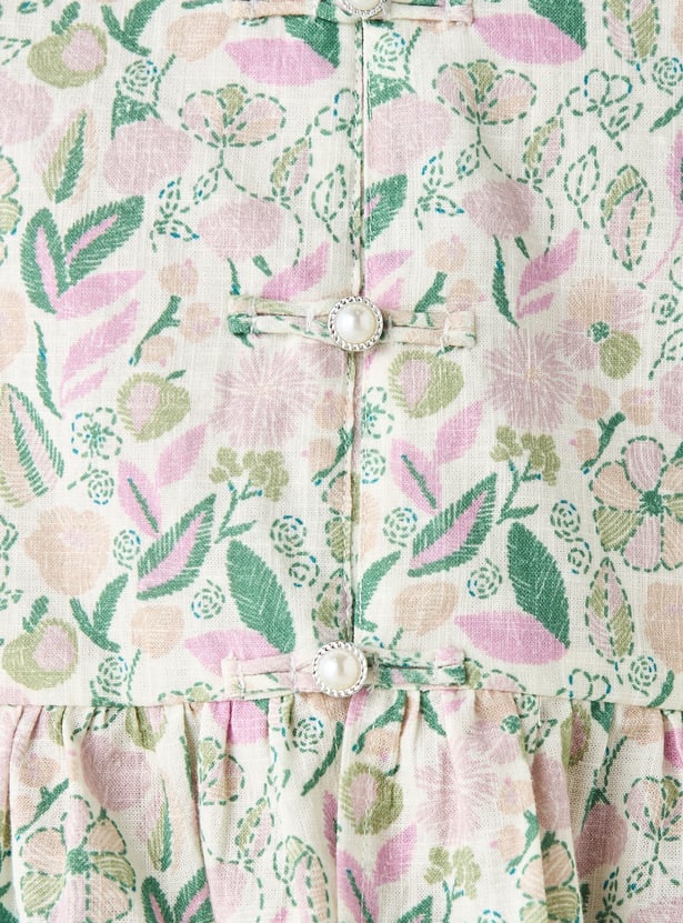 Juniors Floral Print Peplum Top with Round Neck