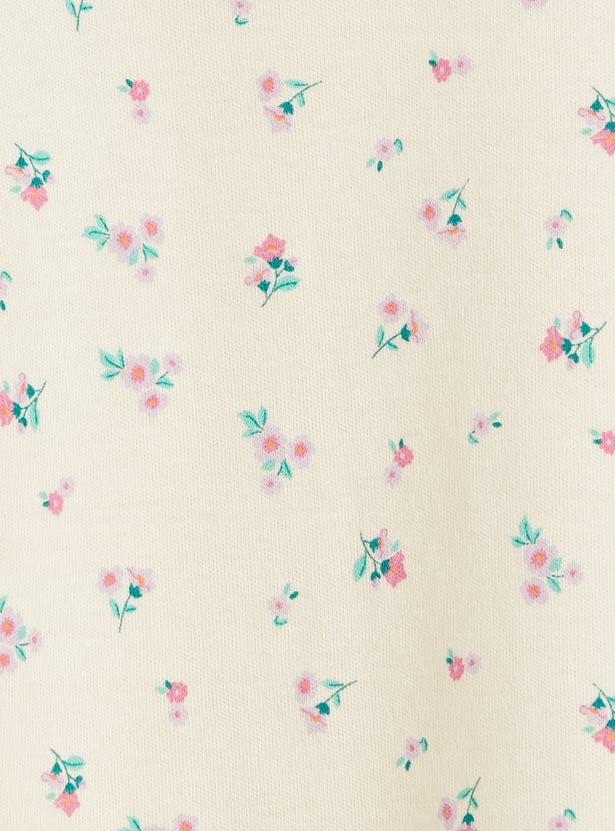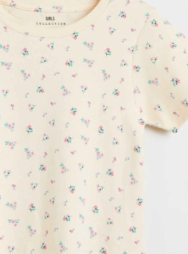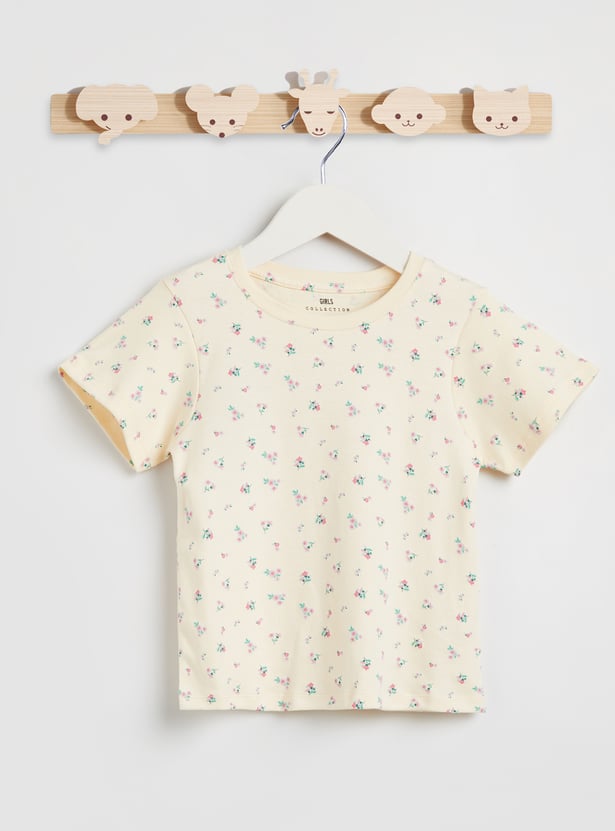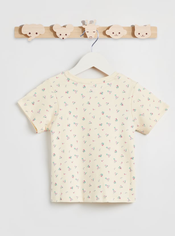Juniors Floral Print T-shirt with Short Sleeves