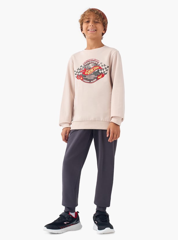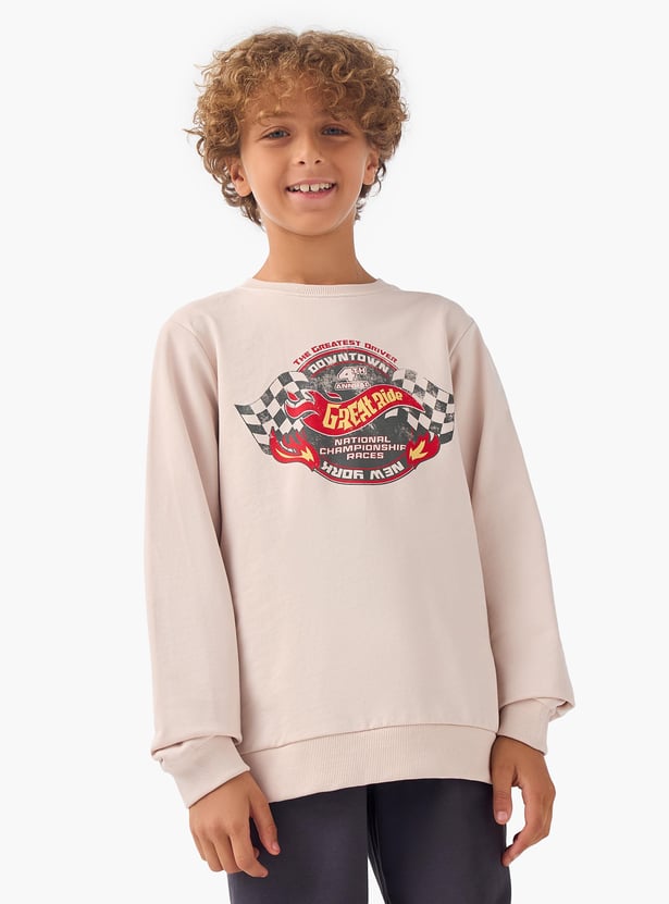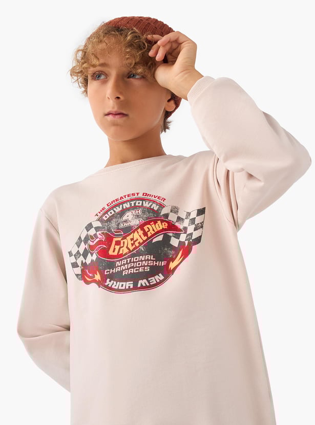 Juniors Graphic Print Pullover with Crew Neck and Long Sleeves
