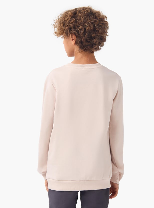 This pullover is the perfect addition to your little boy's casual wardrobe. It's made from pure fabric for breathability and comfort, and features a classic crew neckline and long sleeves. The regular fit ensures a relaxed and comfortable feel, while the pullover's simple yet stylish print makes it easy to pair with a variety of outfits.
