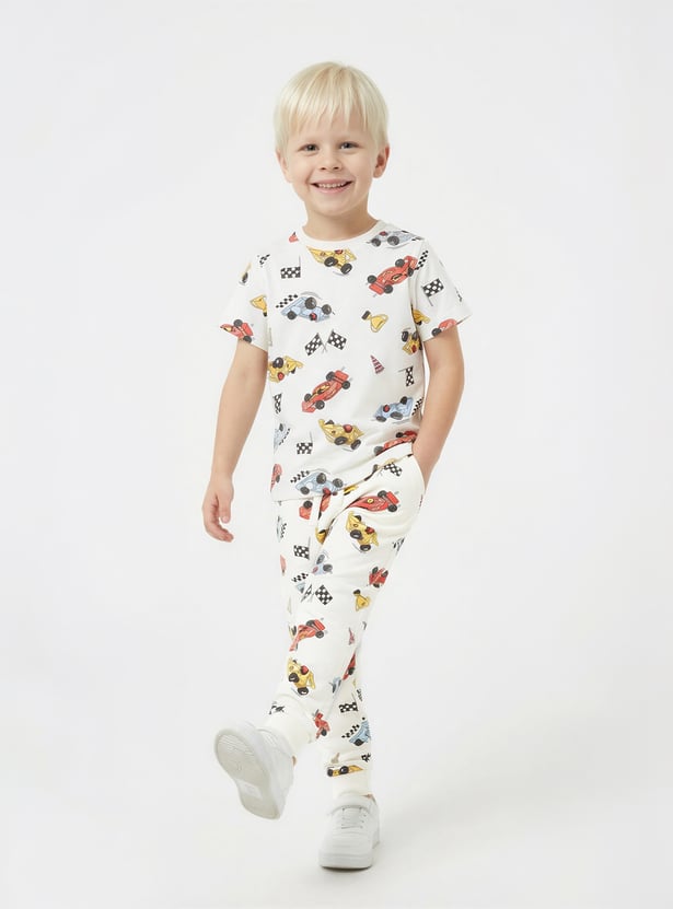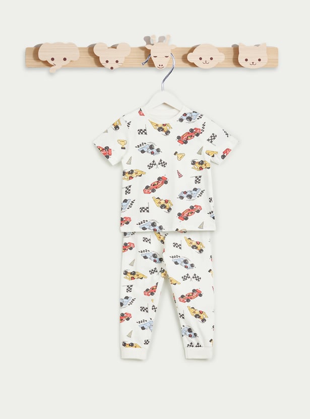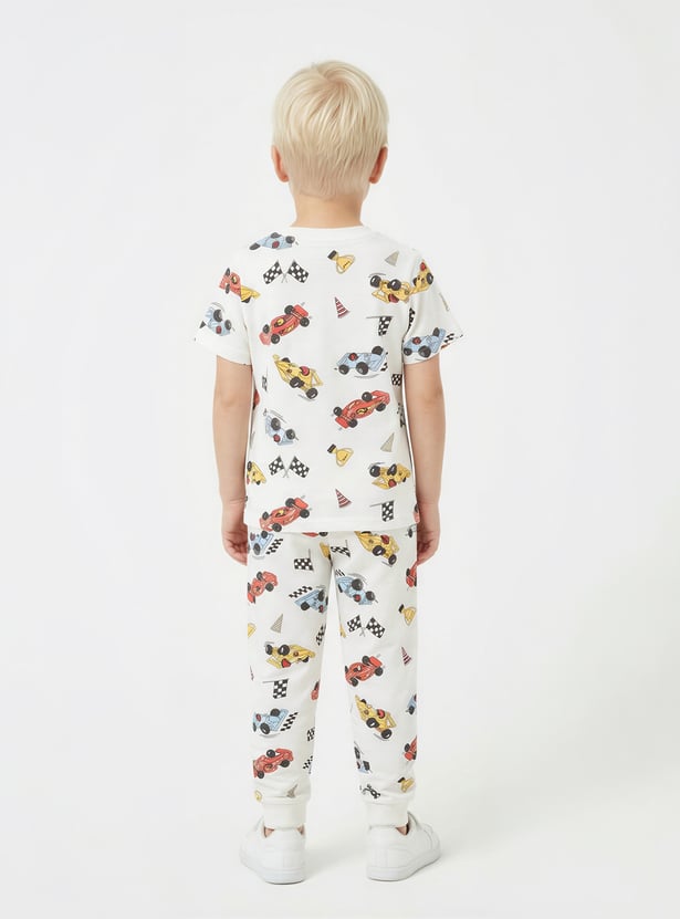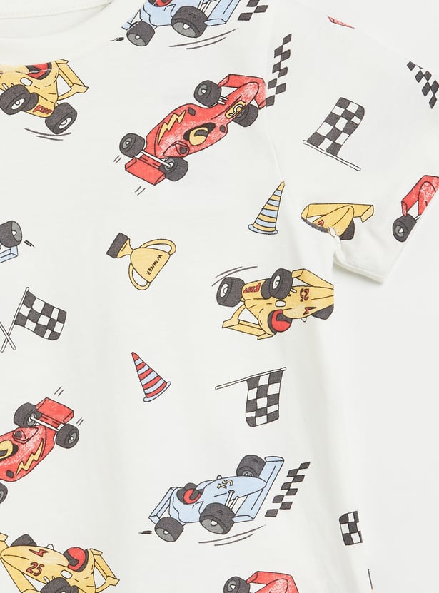 Juniors Race Car Print T-shirt and Pyjama Set