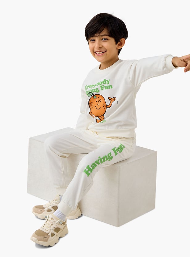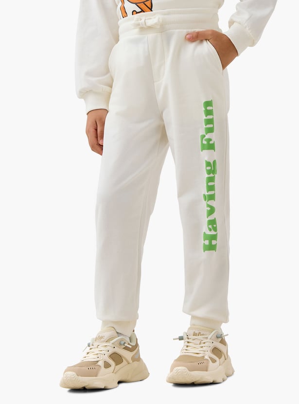 These joggers are perfect for your boy's casual adventures. Designed for comfort and durability, these joggers feature a trendy slogan print that adds a touch of flair to any outfit. The drawstring closure ensures a secure and adjustable fit, while the convenient pockets provide ample space for carrying small essentials. Perfect for active boys, these joggers are made from high-quality materials that offer both softness and resilience, making them ideal for everyday wear.