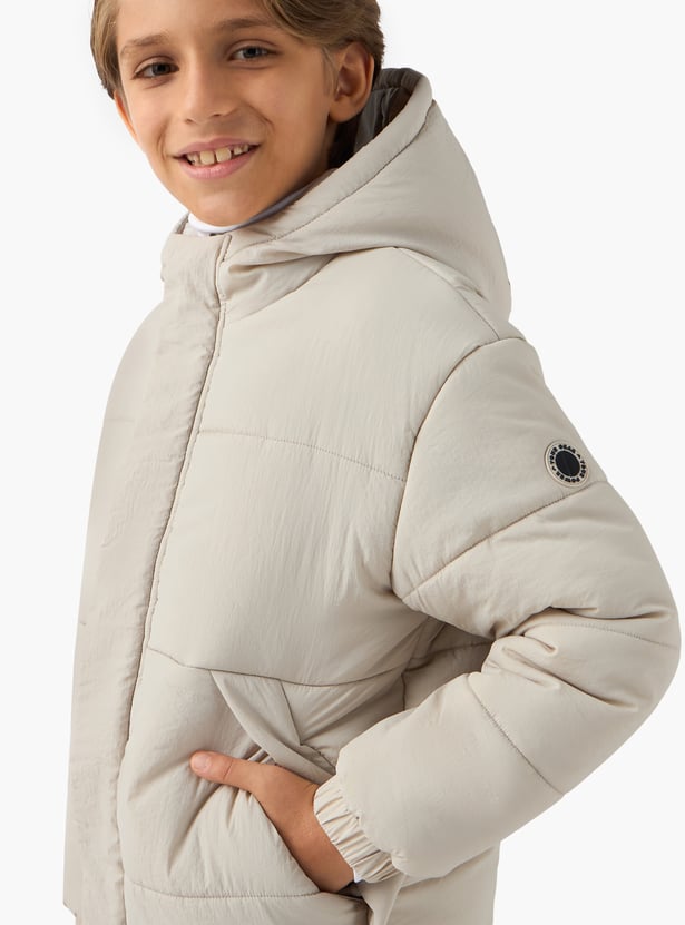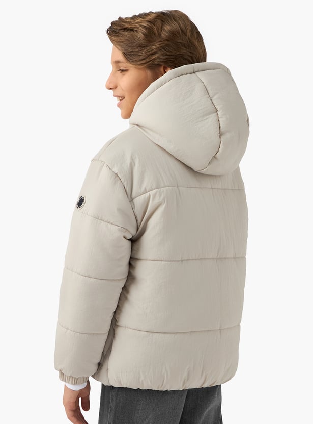 Juniors Solid Hooded Heavy Jacket with Long Sleeves