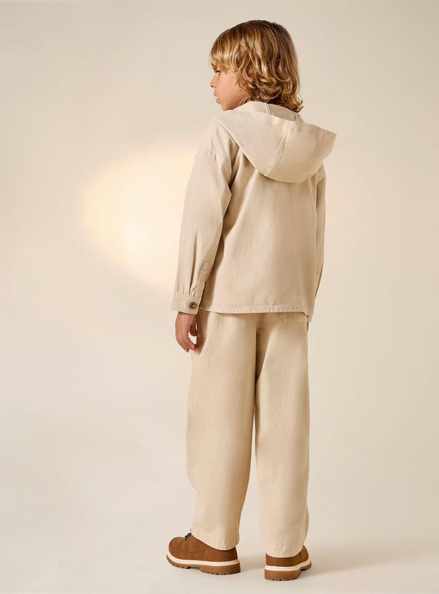 Juniors Solid Long Sleeve Hooded Shirt and Pants Set