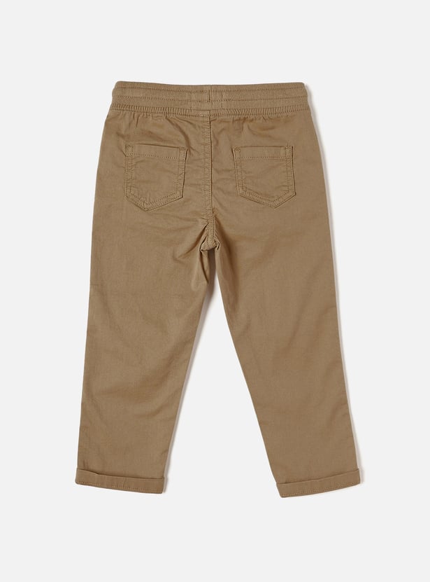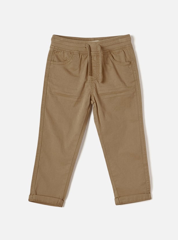 Consider these solid-toned pants for your little one. They're made from soft fabric, lending a skin-friendly feel and breathability. The pants have a drawstring waist for a snug fit and 4 pockets, making them apt for regular wear. These pants are versatile and a must-have in your kid's collection.