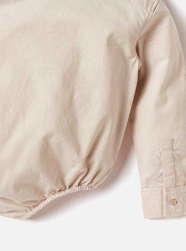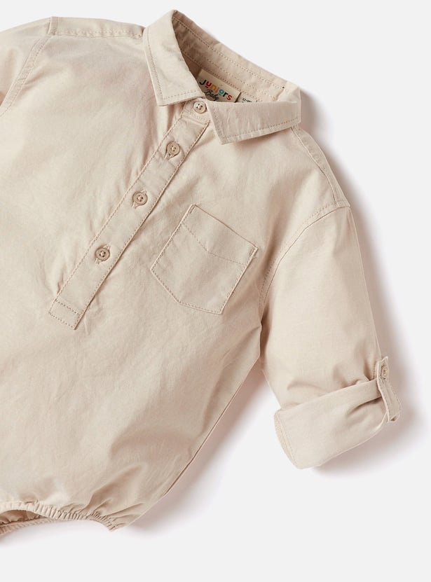 Juniors Solid Shirt Style Bodysuit with Button Closure and Roll-Up Tab