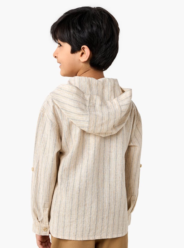 Juniors Striped Hooded T-shirt with Long Sleeves
