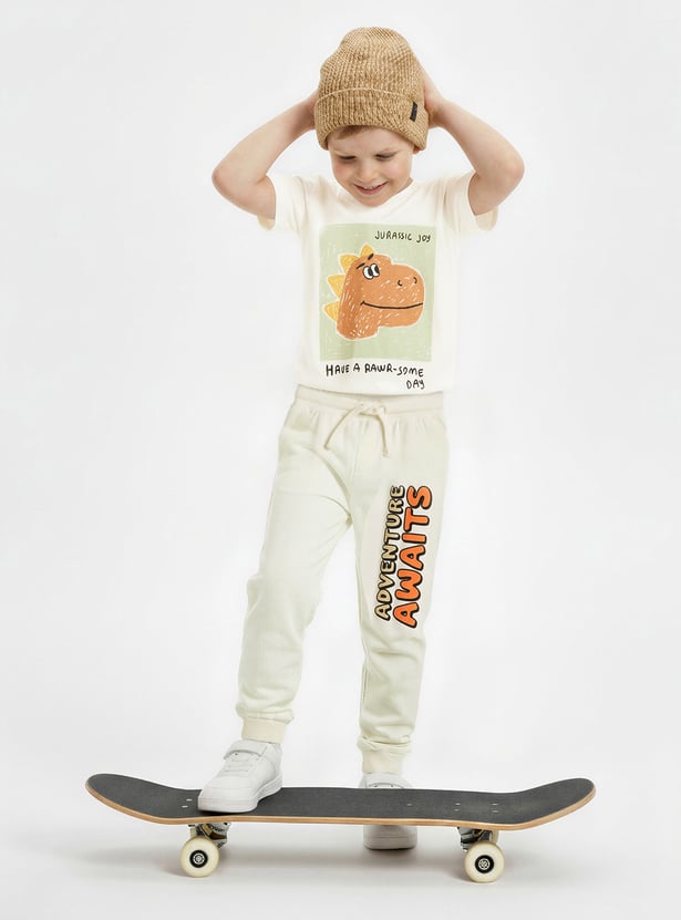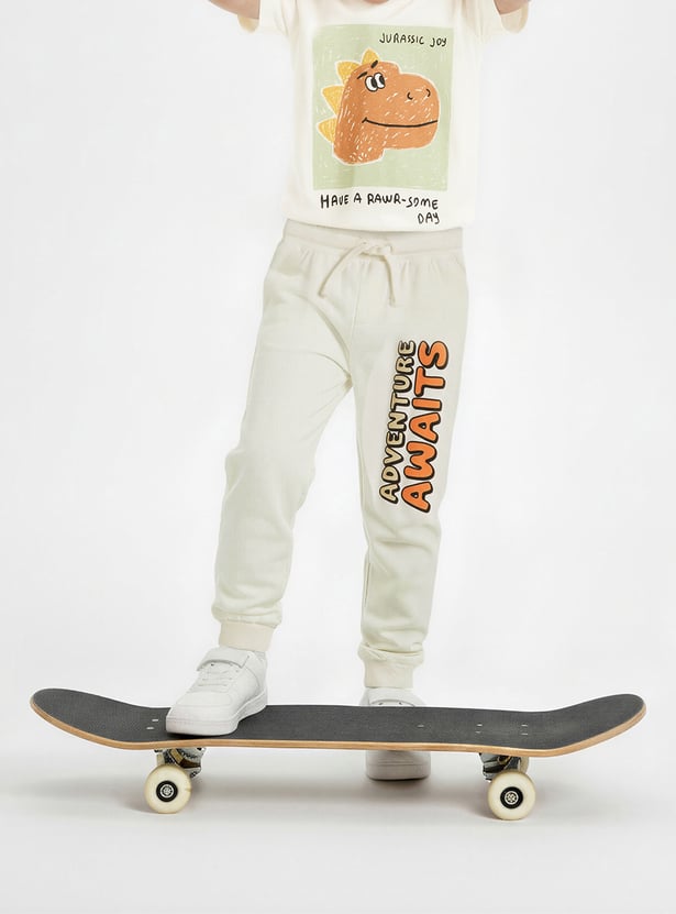 Step up his casual style with these typographic print joggers, designed with a comfy elasticated waist, practical side pockets, and a secure drawstring closure — the perfect blend of everyday ease and trendy flair.
