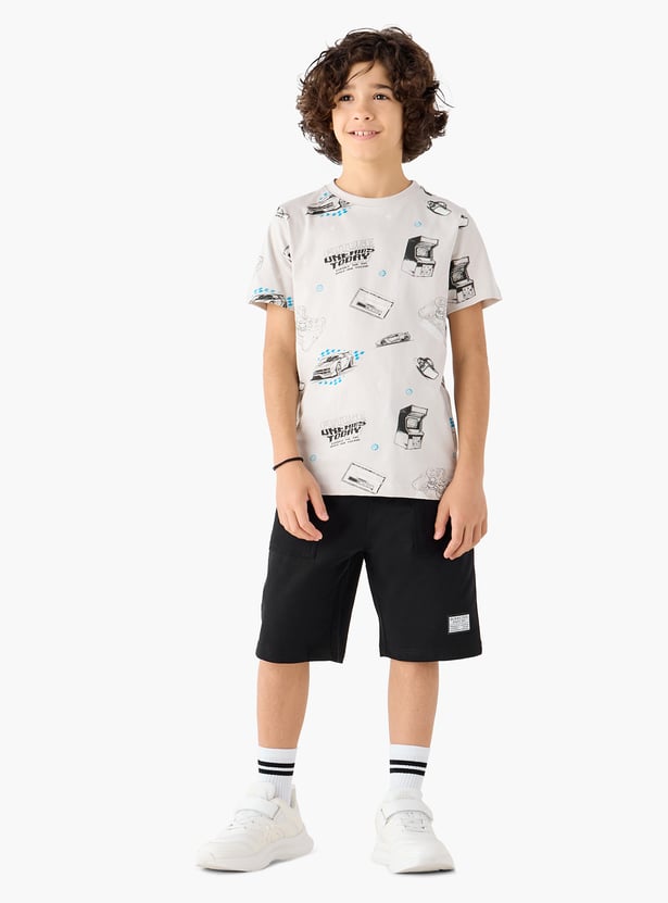Juniors Applique Detail Shorts with Drawstring Closure and Pockets