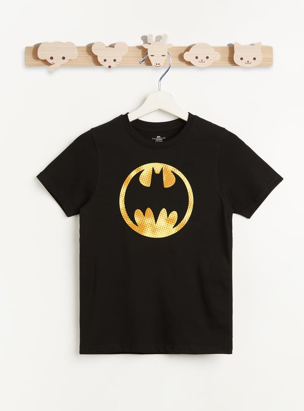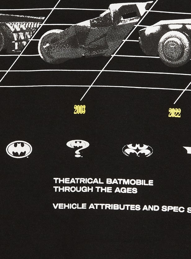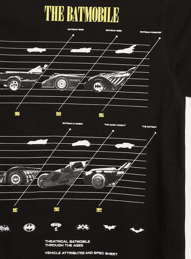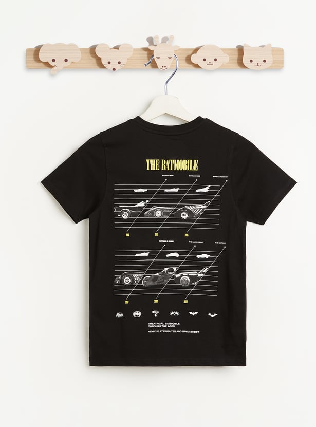 Level up your child's casual style with this cool Juniors Batman print t-shirt. Featuring a bold Batman logo in the front and Batmobile design at the back, it’s perfect for your little one. Made from soft, breathable fabric, this tee ensures all-day comfort and standout appeal.
