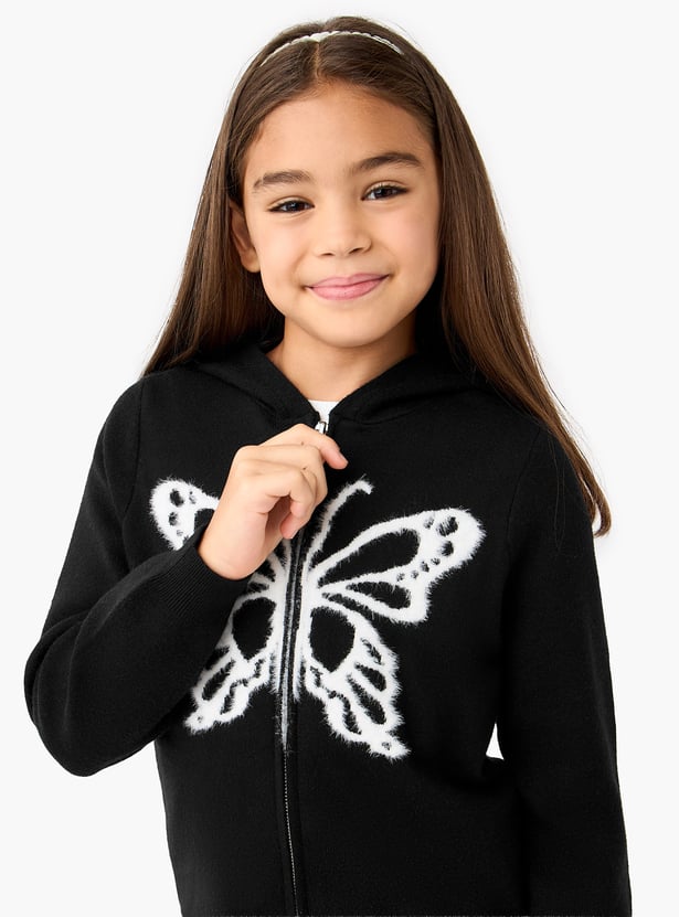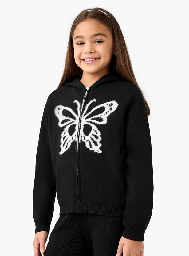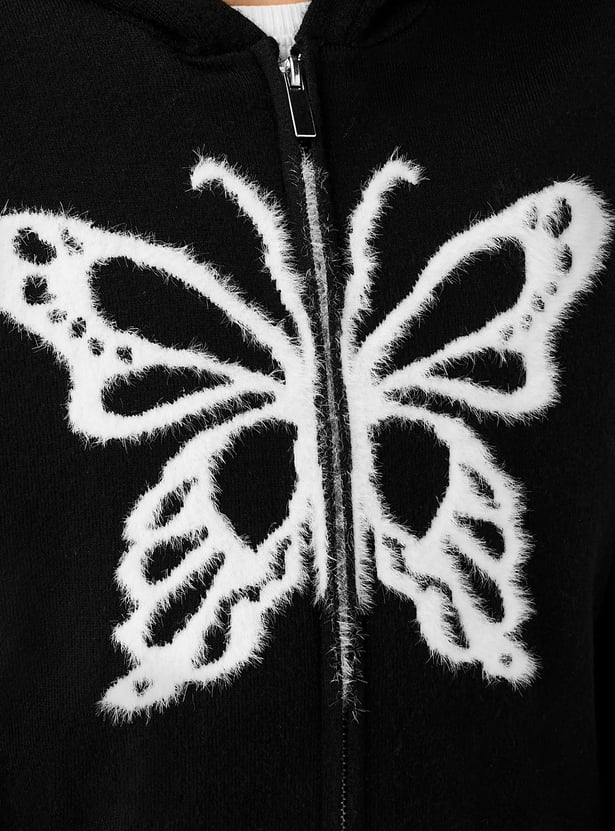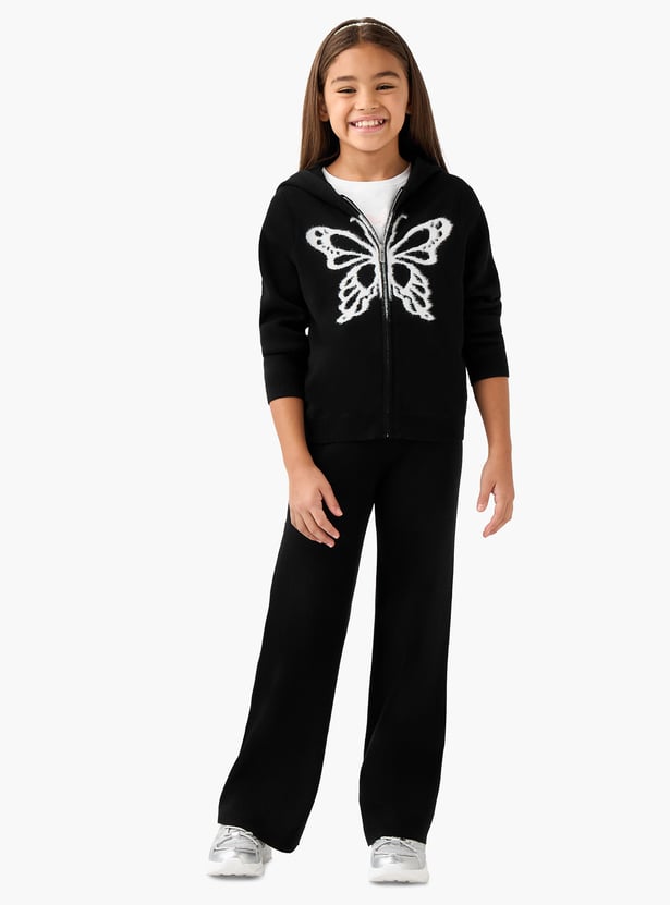 Juniors Butterfly Print Zip Through Hoodie and Pants Set